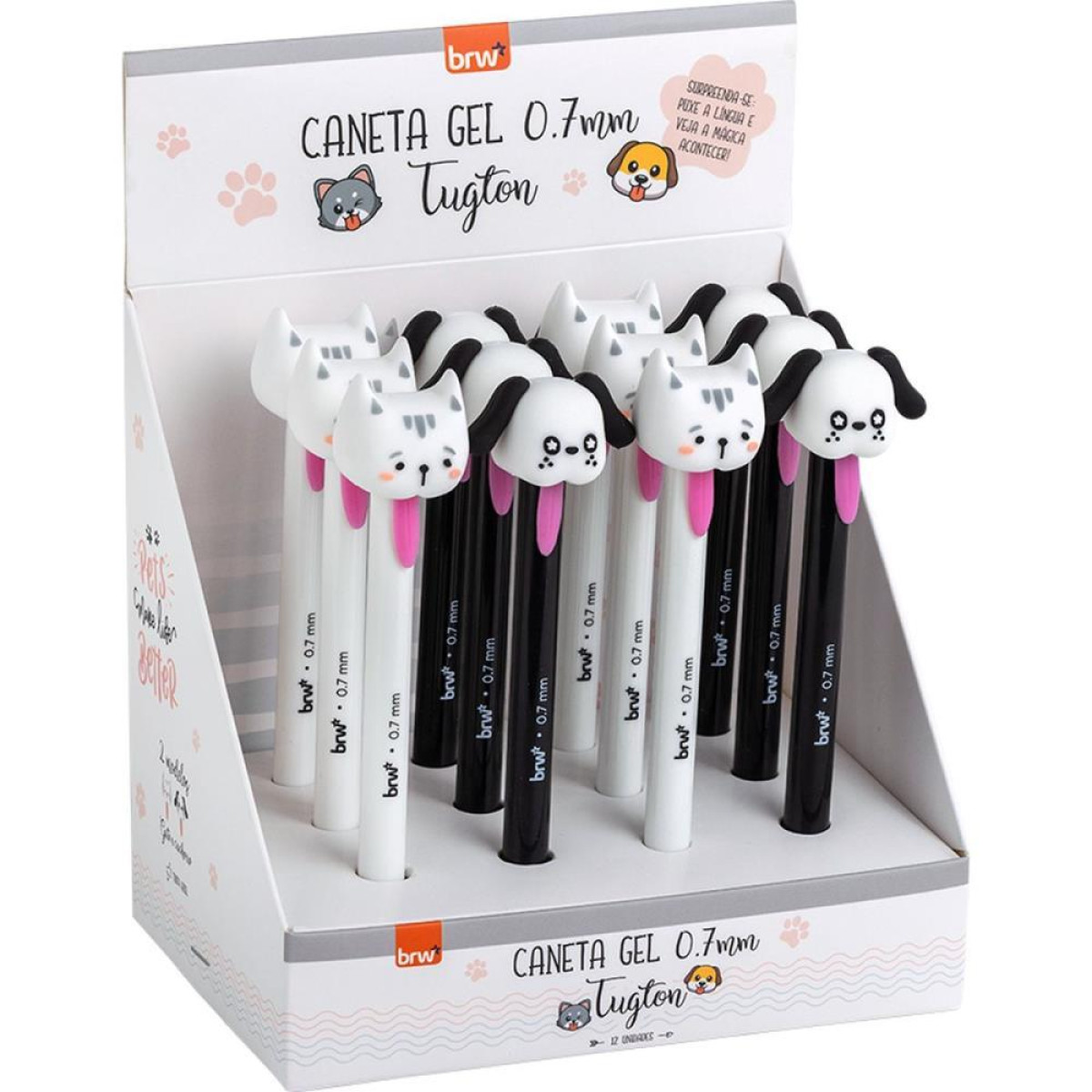 A CANETA DIVERT GEL TTUGTON DA BRW, POSSUI TINTA AZUL E ESCRITA DE 0,7MM. DOIS MODELOS DE PONTEIRAS: GATO E CACHORRO. PARA LIBERAR A PONTA DA CANETA, BASTA PUXAR A LINGUA DO GATO OU CACHORRO PARA BAIXO.