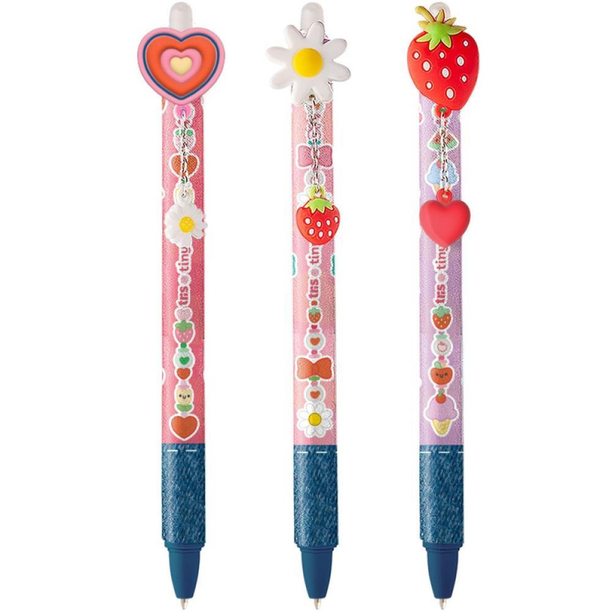 Inspirada nos pingentes e micangas que estao em alta, a colecao Charm conta com cores alegres e design divertido. E perfeita para customizar e criar memorias especiais com os amigos! A caneta gel apagavel Tiny possui toppers fofissimos com mini chaveiro que serve como mecanismo retratil. Seu corpo e super decorado e a ponta e fina, 0.7mm, o que garante uma escrita macia! Tinta azul!