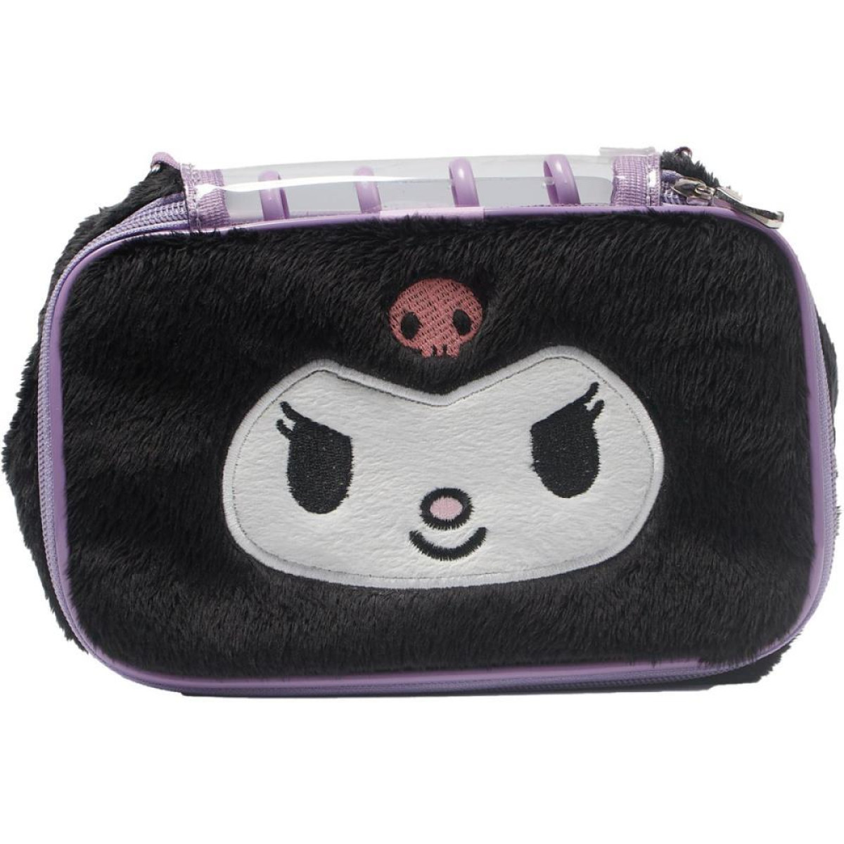 Estojo Pelucia Kuromi Pelucia Big 50 - Obi do Brasil , Produto licenciado Sanrio , confeccionado em tecido pelucia e estampa bordada de personagem Kuromi com o exclusivo Sistema DisClick patenteado pela Obi Brasil, composto por 4 discos de ABS e um sistema de acessorios reposicionaveis. Contem na embalagem uma aba de elasticos para 14 lapis eou canetas e um amplo espaco para itens de papelaria. Possuem duas argolas pequenas de metal, que possibilitam clicar uma alca comprida para uso lateral ou a tiracolo. pode virar um bolsa lateral ou necessaire para utilizar em diversos ambientes e momento durante todos dias . Torna se um produto versatil e multiuso .