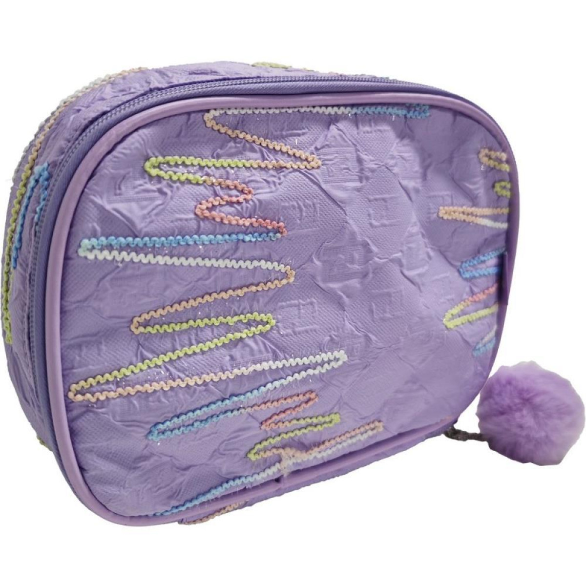 Estojo Box Riscos Modernos (s) DETALHES •1 Divisoria interna com elasticos para organizacao •Compartimento amplo •Com Pompom INFORMACOES ADICIONAIS •Medidas: 23cm x 16cm x 5cm