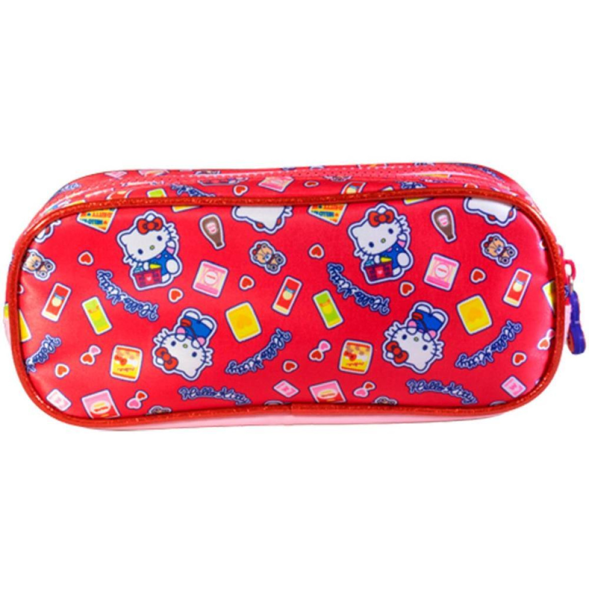 Estojo com Duas Divisoes Hello Kitty. Produto Licenciado Original com certificacao do Inmetro, confeccionado em cetim de poliester e; ziper "trator" e puxador emborrachado com icone da personagem. Produto com certificacao do Inmetro, Original Licenciado