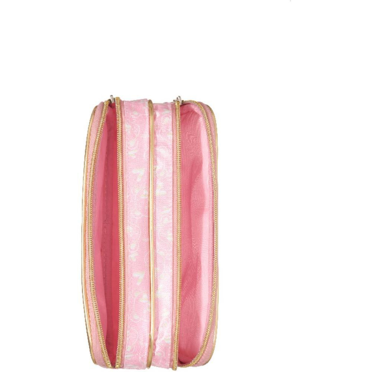 Colecao confeccionada em cetim com estampa corrida em foil. Painel frontal com impressao