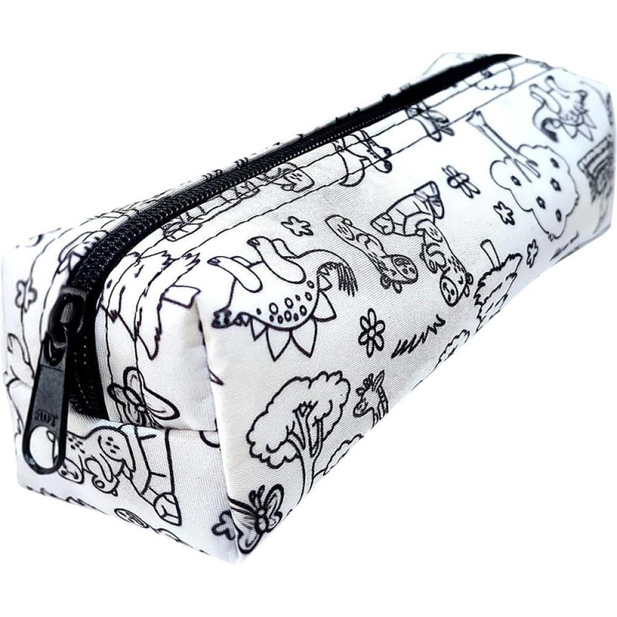 Feito em cetim lavavel de alta qualidade, o estojo vem com estampa pronta para ser colorida com caneta hidrografica ou tintas lavaveis.