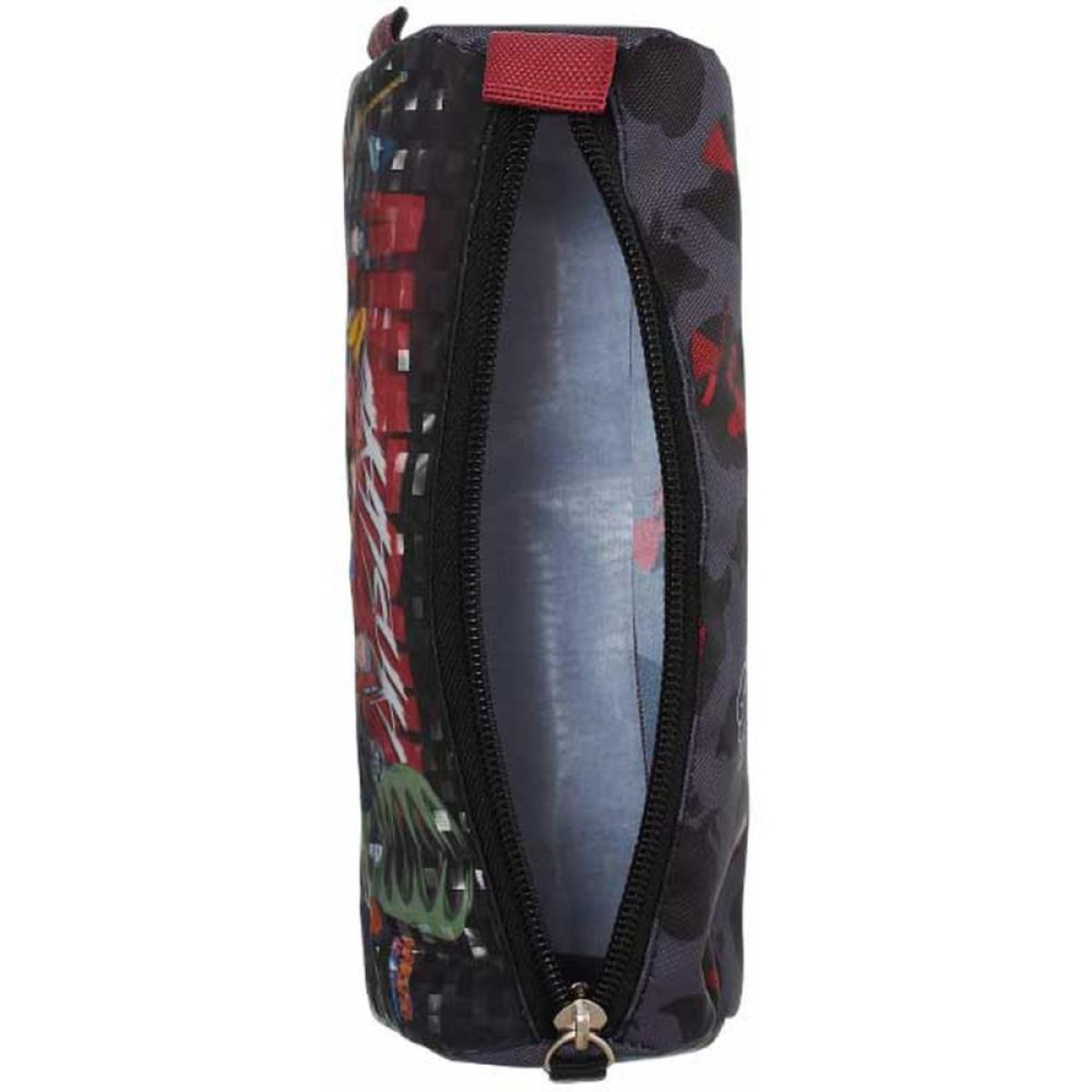 Colecao confeccionada em poliester com painel frontal em PVC laser com impressao transfer. Puxador de ziper em fita de gorgorao