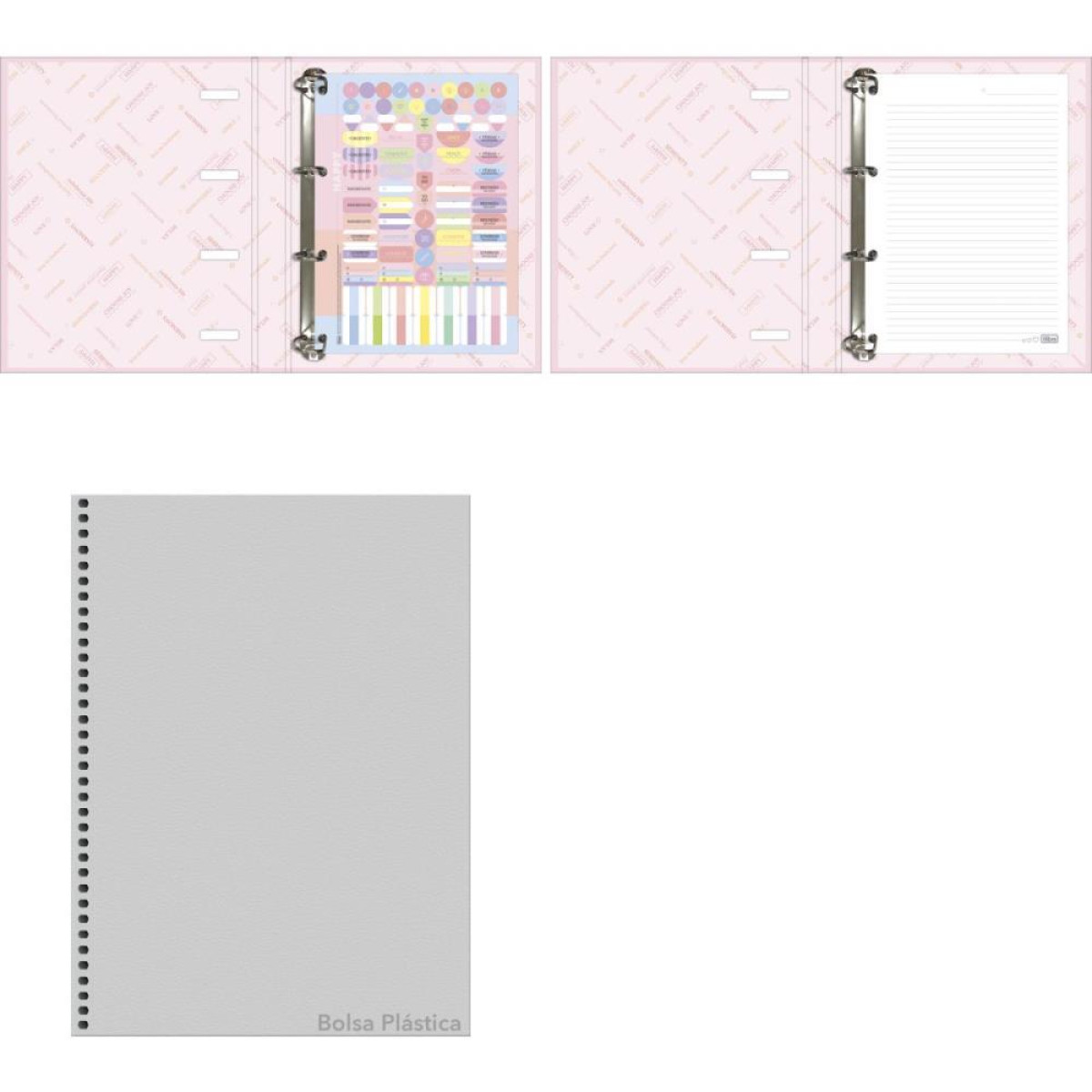 O Caderno Argolado Cartonado Universitario com Elastico Happy 48 Folhas da Tilibra combina praticidade e estilo, com capa dura metalizada, elastico, parte interna decorada, adesivos, bolsa plastica e folhas pautadas e decoradas, ideal para organizar suas anotacoes.