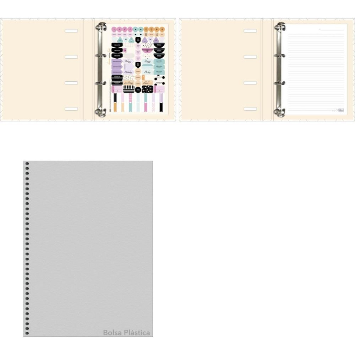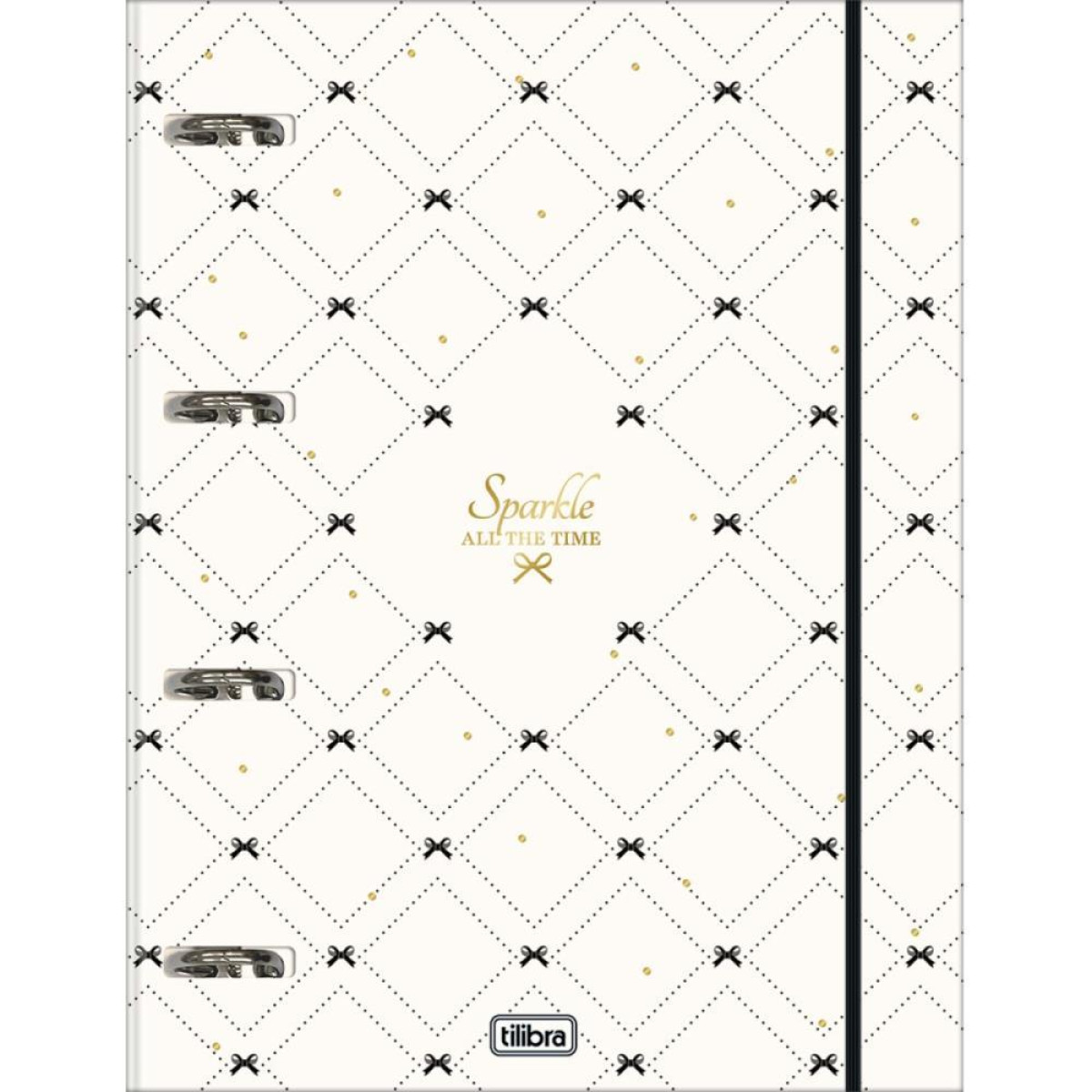 O caderno argolado Tilibra possui capa dura com detalhe metalizado, elastico e parte interna decorada, oferecendo um visual moderno e sofisticado. O produto tambem vem com adesivos, bolsa plastica para guardar trabalhos e anotacoes e refil de 48 folhas pautadas e decoradas. Adquira agora o seu!