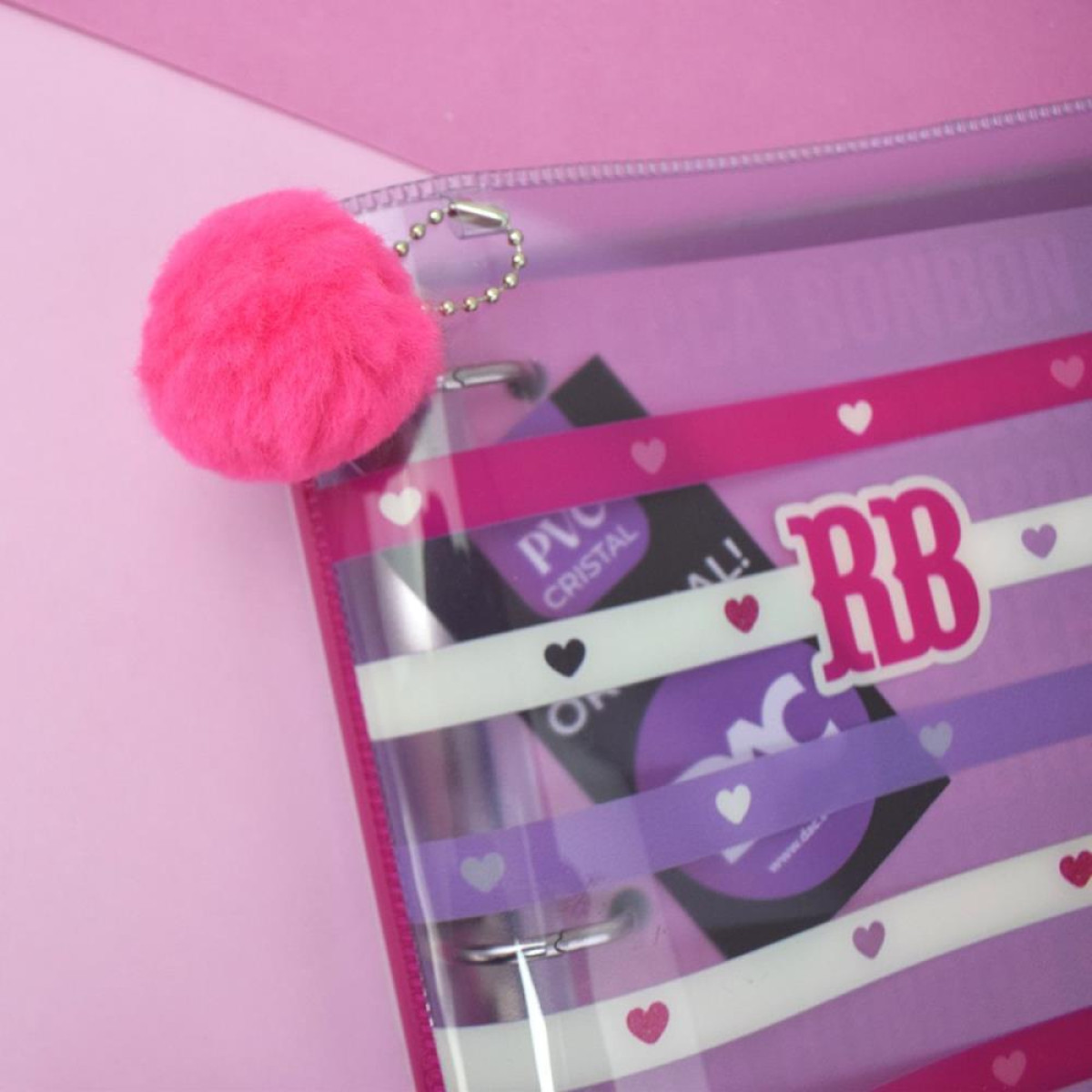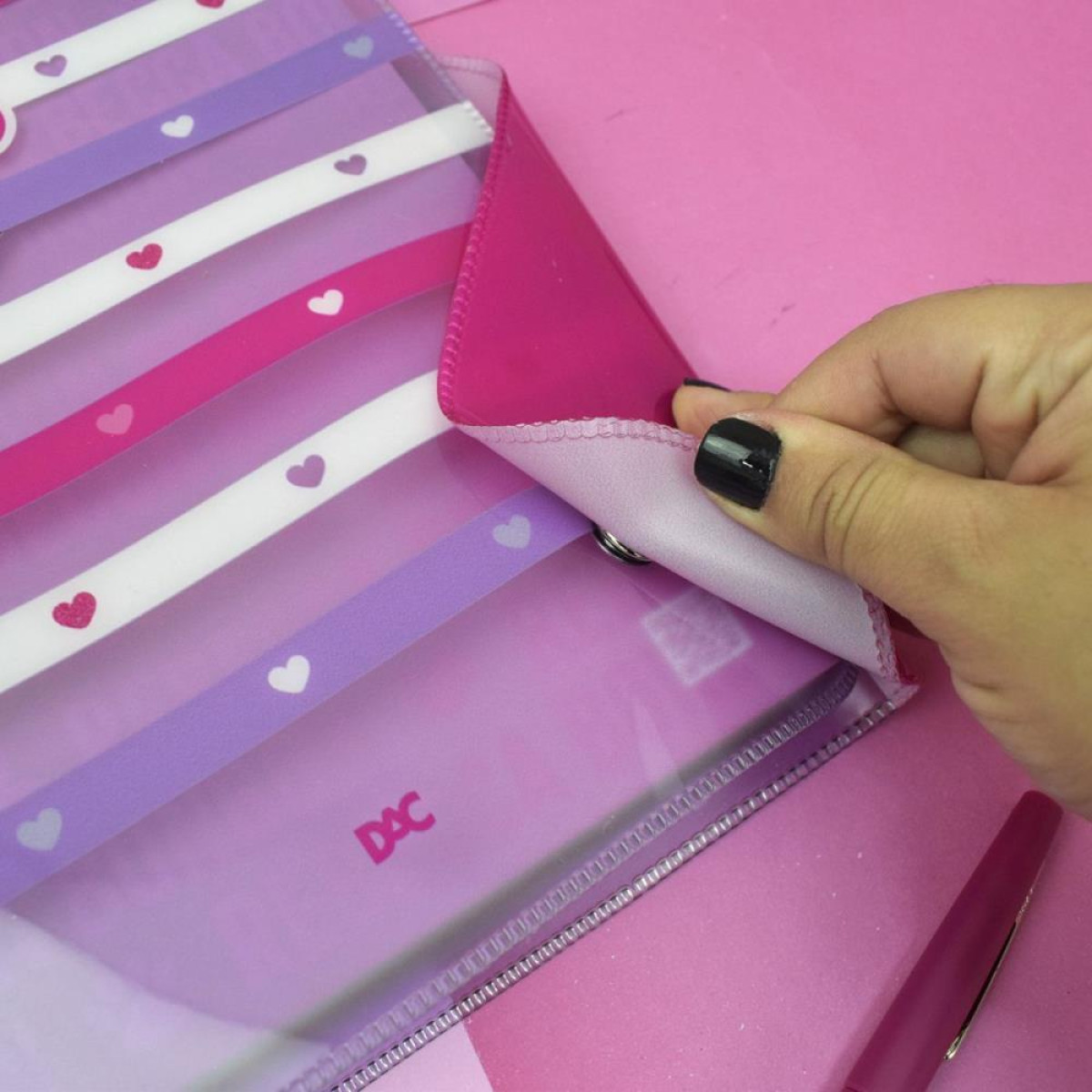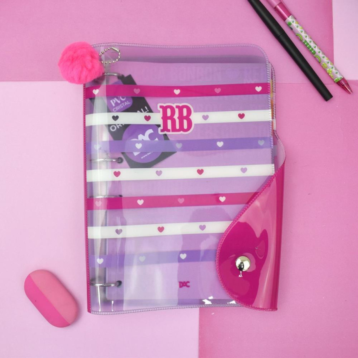 O Fichario de PVC Rebecca Bonbon da DAC possui design exclusivo com fecho em botao e estampa direto no PVC.