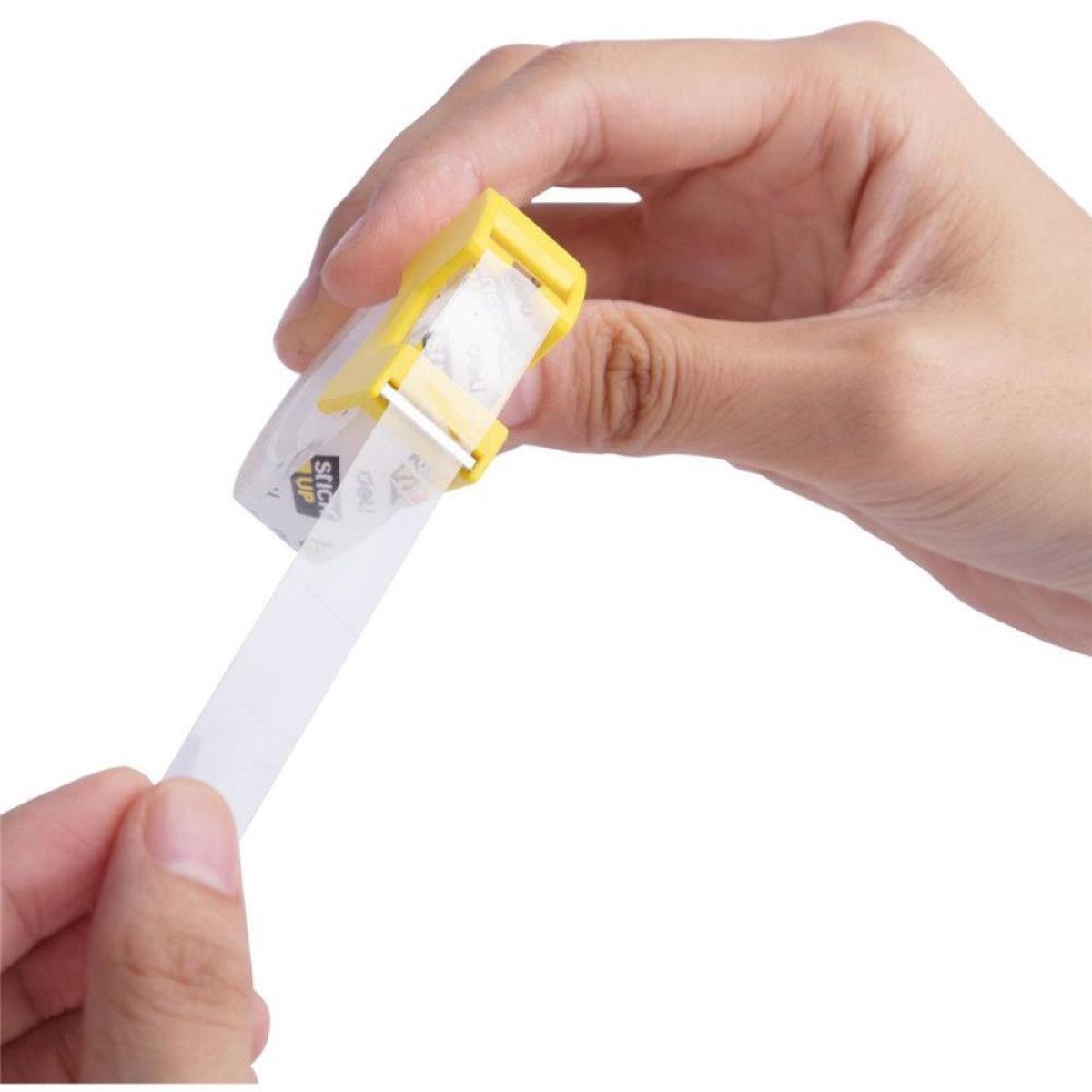 Adesivo facil para colagem, fixacao, selagem e correcao. Desenrolamento suave no dispensador para operacao conveniente com uma mao so. Cola acrilica nao toxica. Baixo odor. Facil de escrever com lapis ou caneta esferografica para correcao