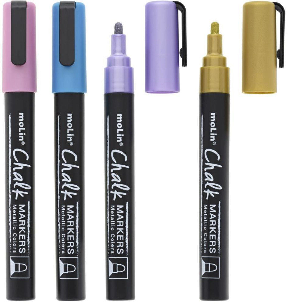 Giz Liquido 4 Cores Metalicas - Molin. Bolsa com 04 cores. RosaAzulLilas e Dourada.