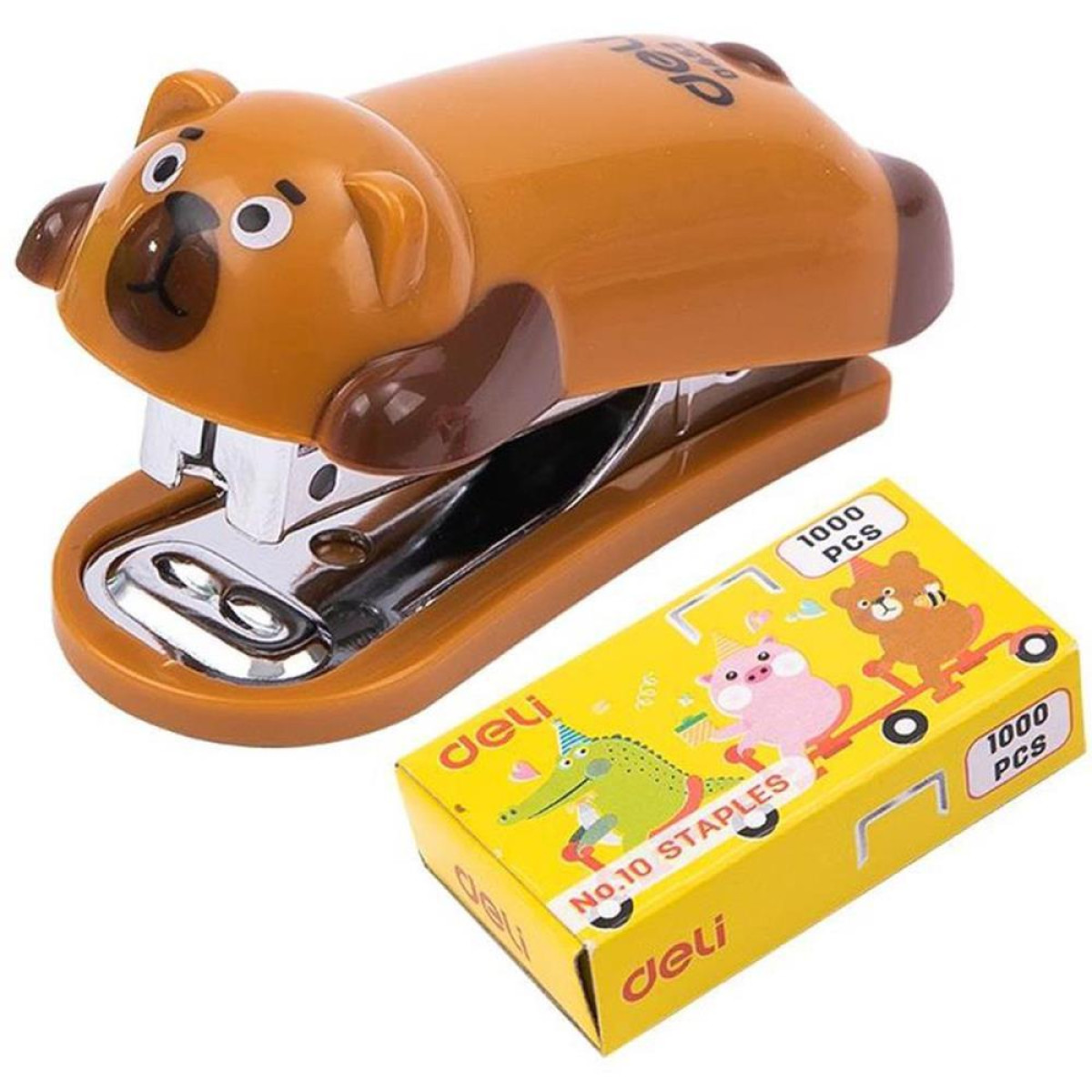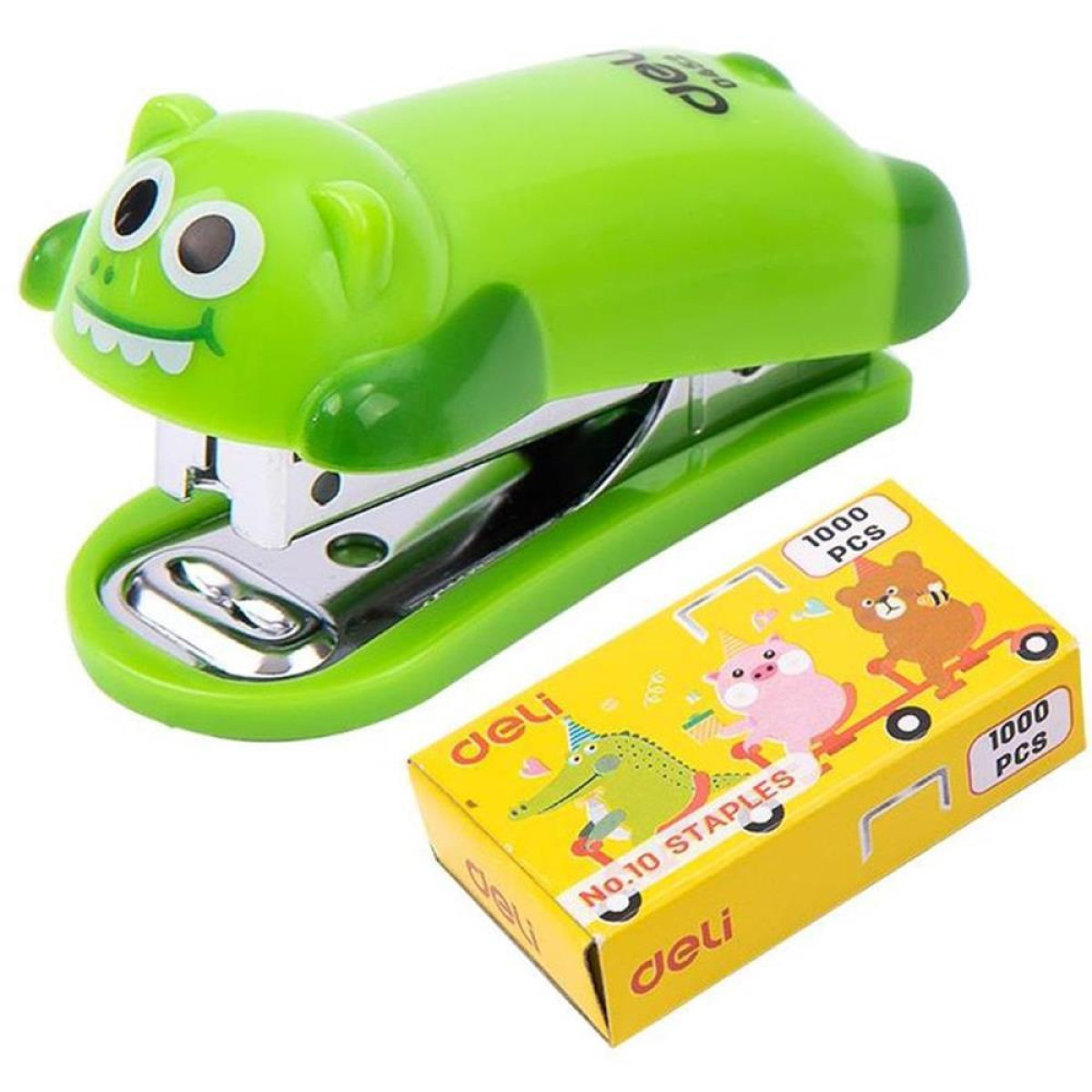Indicador de grampos baixo e conveniente. Tamanho mini para portabilidade. Removedor de grampos integrado para remocao conveniente de grampos. Conjunto de cores brilhantes com formato de animal