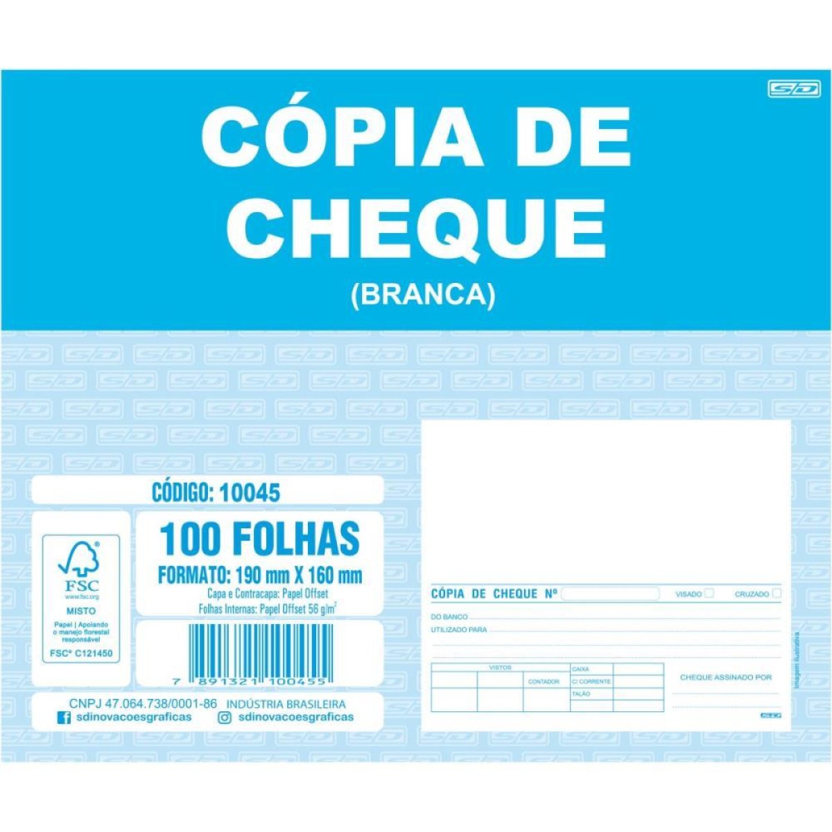 Impresso Copia De Cheque Branco 100 Folhas 160x190mm Impresso Copia de Cheque Folhas: 100 Formato: 160mm x 190mm Papel: 56gm Branca
