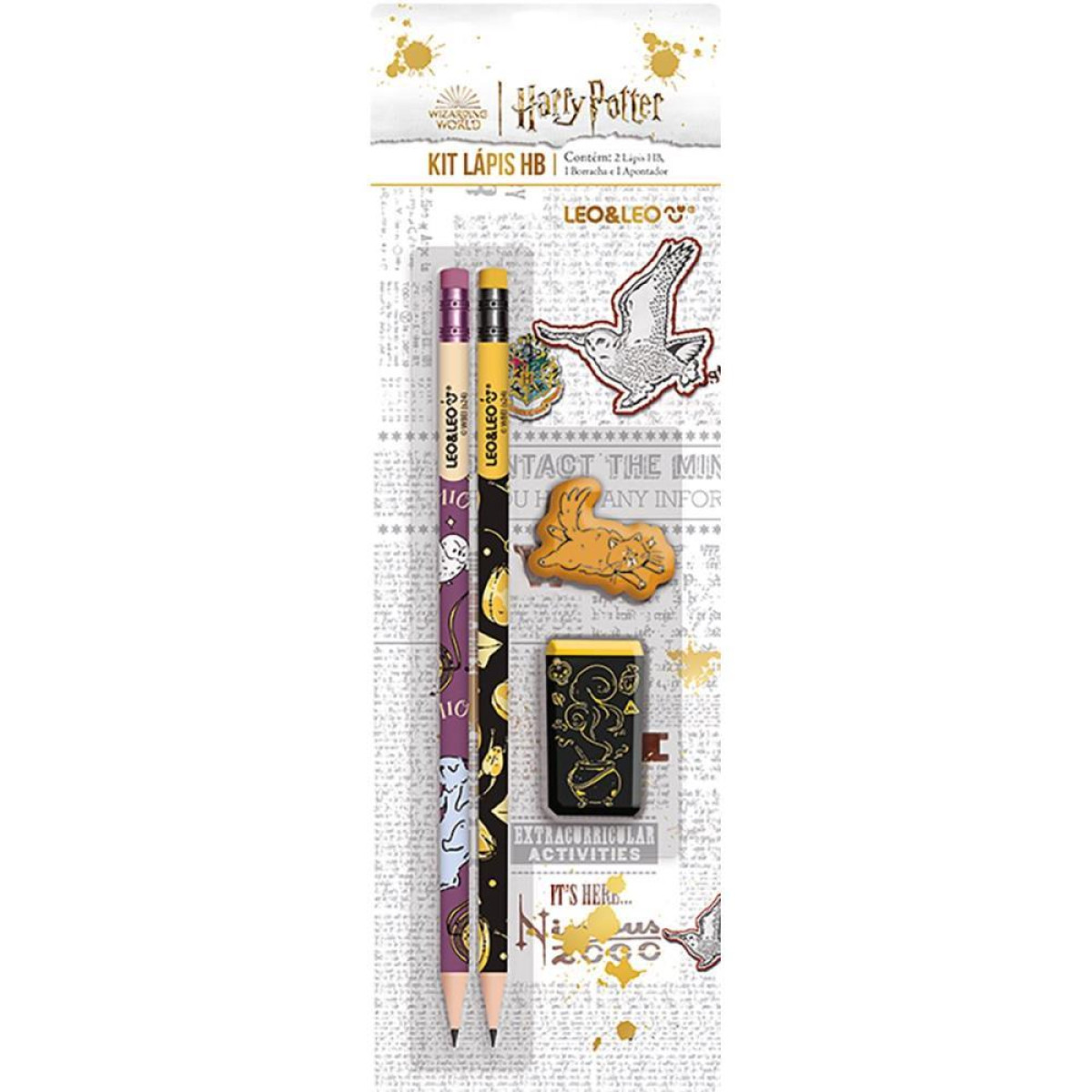 Kit Escolar Harry Potter Hb C/ 04 Pecas 4 itens personalizados Lapis com borracha em 2 estampas Apontador e borracha do personagem