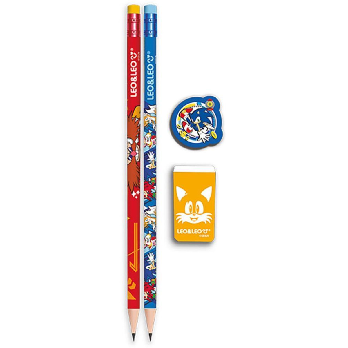 Kit Escolar Sonic Hb C/04 Pecas 4 itens personalizados Lapis com borracha em 2 estampas Apontador e borracha do personagem