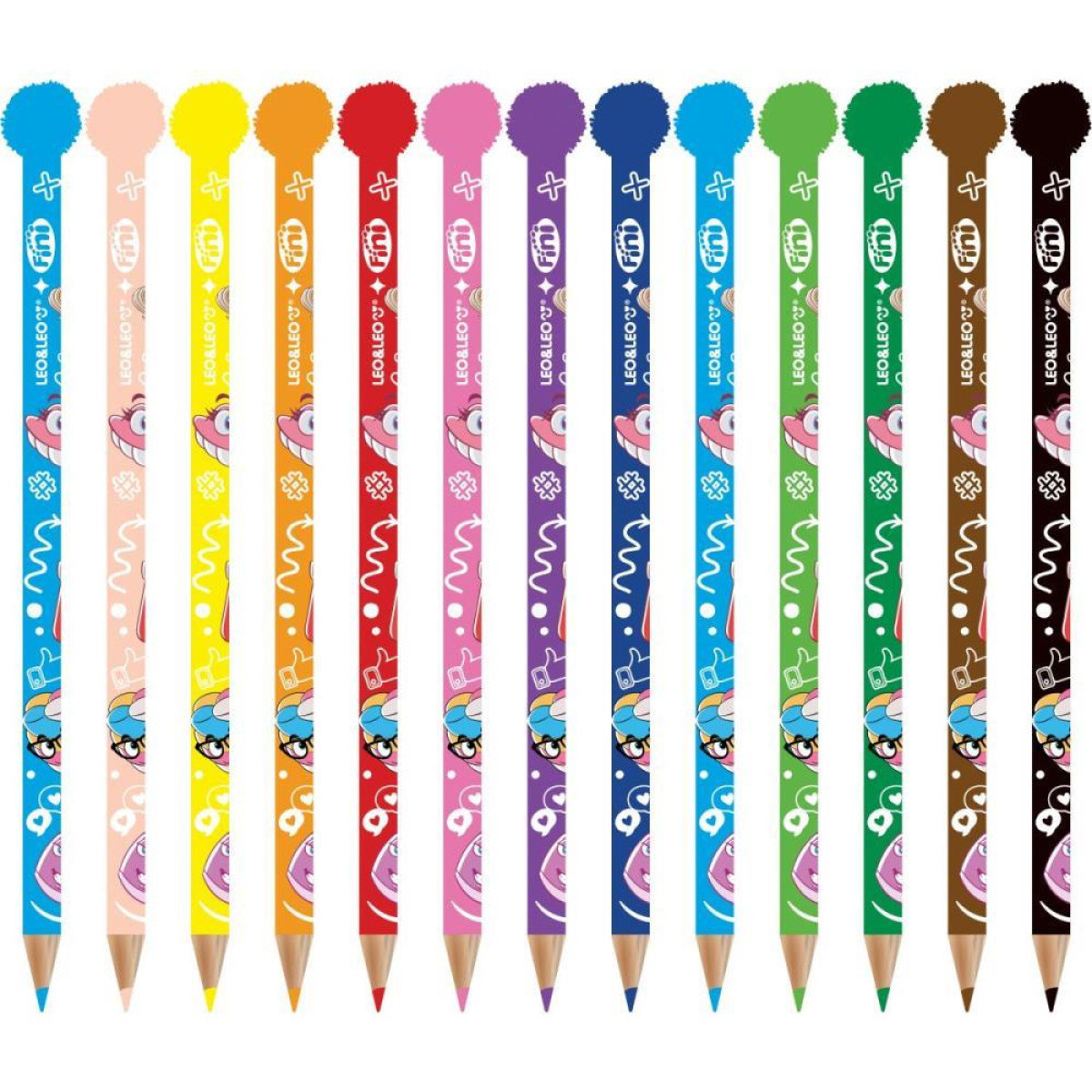 Lapis De Cor Triangular Fini C/pompom 12cores 12 unidades com as cores exclusivas da collab; Formato triangular e com pompom na ponta; Cor do pompom e similar a cor da mina; Corpo estampado.