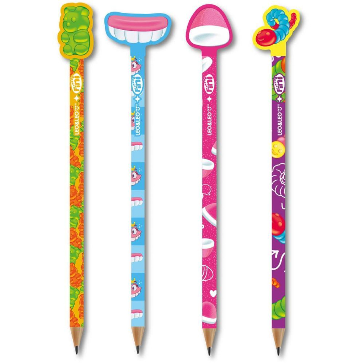 Lapis Preto Redondo Decorado Fini Hb C/borracha (s) Lapis com 4 estampas diferentes, com borrachas removiveis e em formatos exclusivos; 2 lapis hb com borracha; 2 estampas diferentes em cada blister.