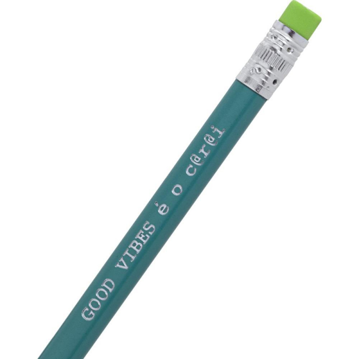 LAPIS PRETO COM BORRACHA NA PONTEIRA E FRASES DIVERTIDAS NO CORPO DO LAPIS, CORPO TRIANGULAR, MINA DE 2,5 MM 3 CORES COM UMA FRASE POR MODELO. DISPLAY COM 18 UNIDADES