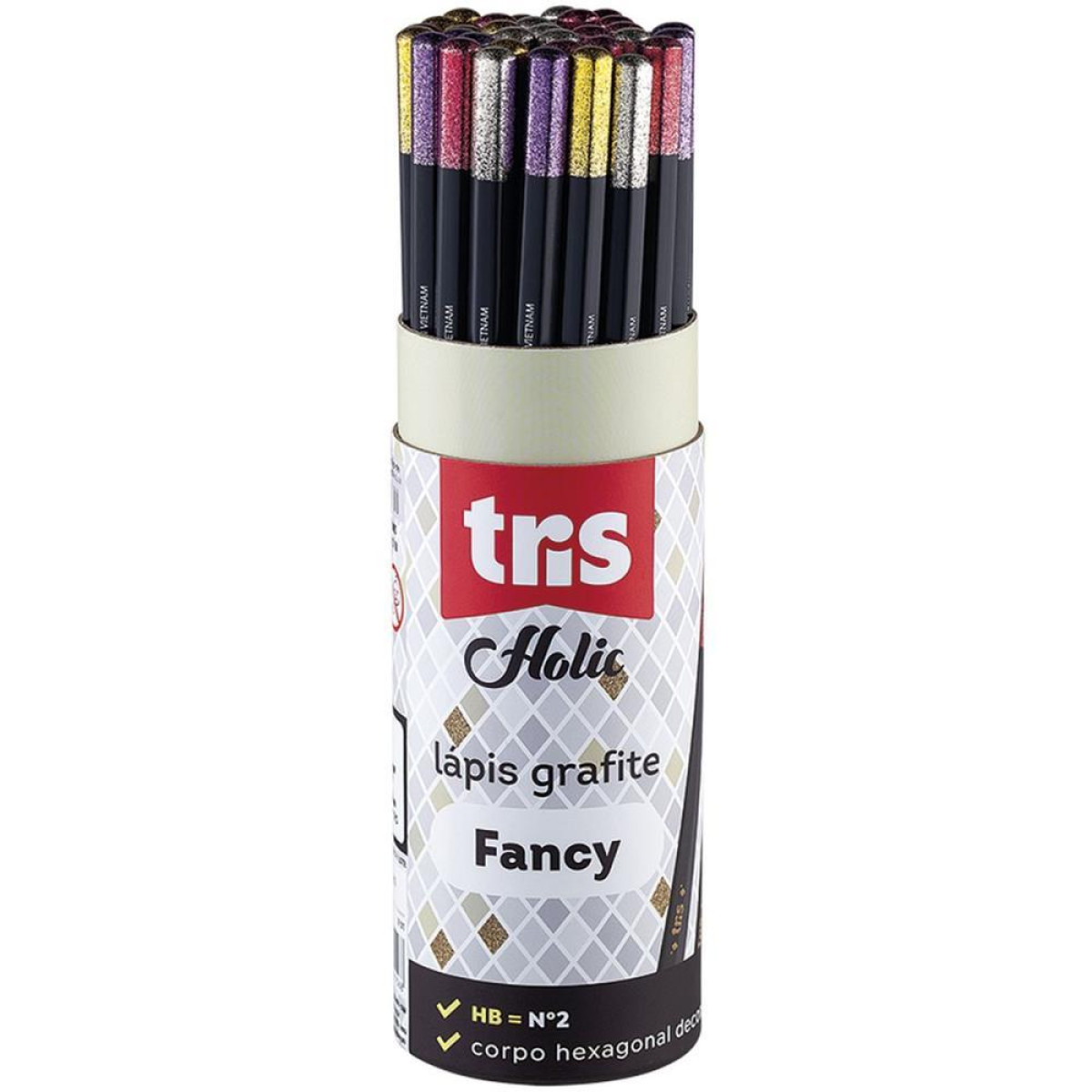 Com cores e estampas classicas que nunca saem de moda, a colecao Holic Fancy leva mais estilo e elegancia para os estudos. O lapis grafite Fancy tem corpo com efeito perolado e topo decorado com efeito bling, super glitter que nao solta nas maos!