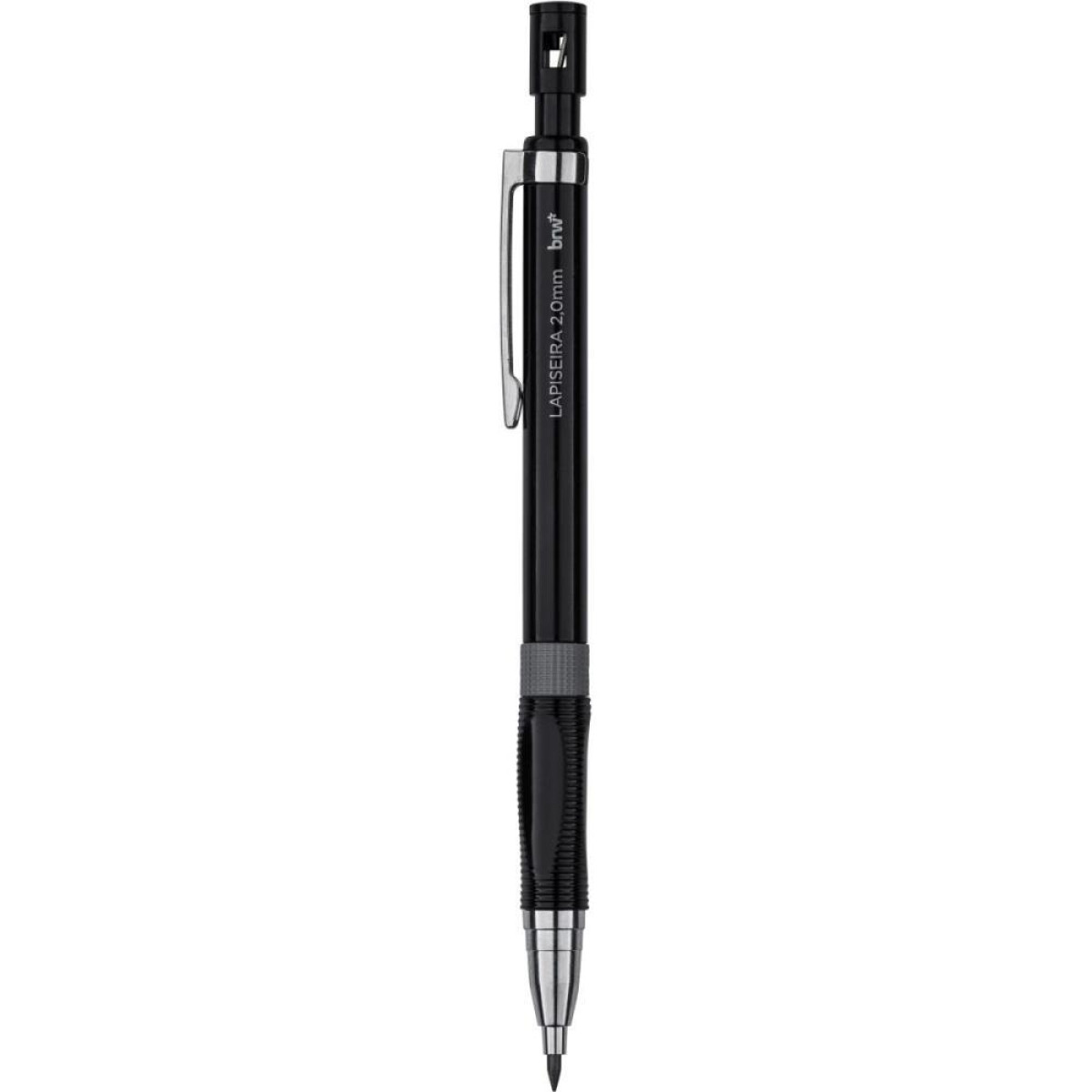 LAPISEIRA PLASTICA 2,0MM PRETA + AZUL, CLIP EM METAL, APONTADOR EMBUTIDO, CORPO REDONDO COM GRIP PARA MAIOR CONFORTO E ESTABILIDADE NA ESCRITA. CAIXA COM 12 UNIDADES