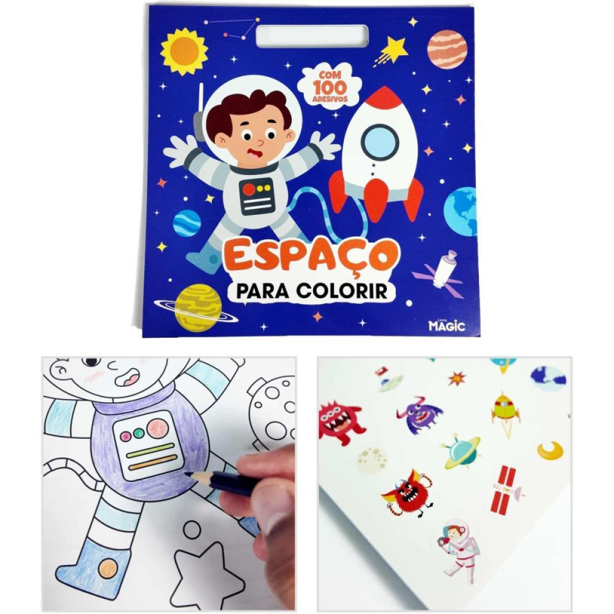 Livro Com Adesivos 100 Adesivos Espaco 28x28cm