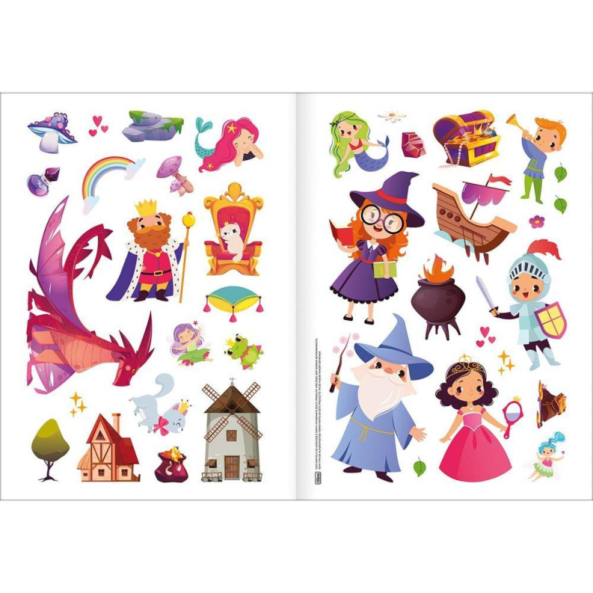 O Album de Atividades Cenario Magico Jardim Encantado e perfeito para estimular a imaginacao das criancas! Sao mais de 120 adesivos para colar em 16 paginas com cenarios variados — como castelos, florestas, espaco e fazenda — prontos para criar historias e aventuras divertidas.