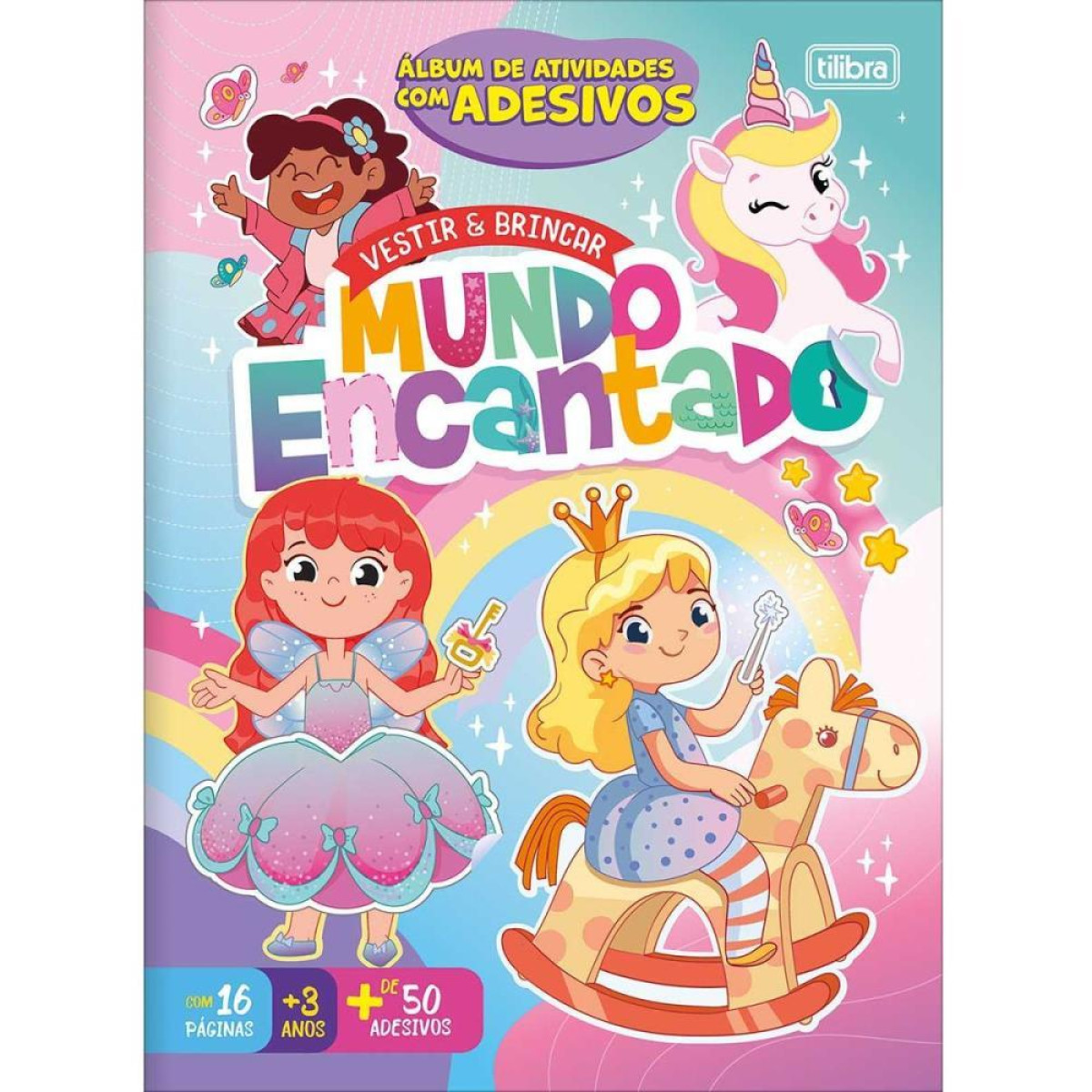 O Album de Atividades Vestir & Brincar Mundo Encantado vai transformar a diversao em pura criatividade! Sao mais de 50 adesivos de roupinhas e acessorios para personalizar personagens magicos em 16 paginas para pintar e enfeitar, tornando cada historia unica e cheia de imaginacao.