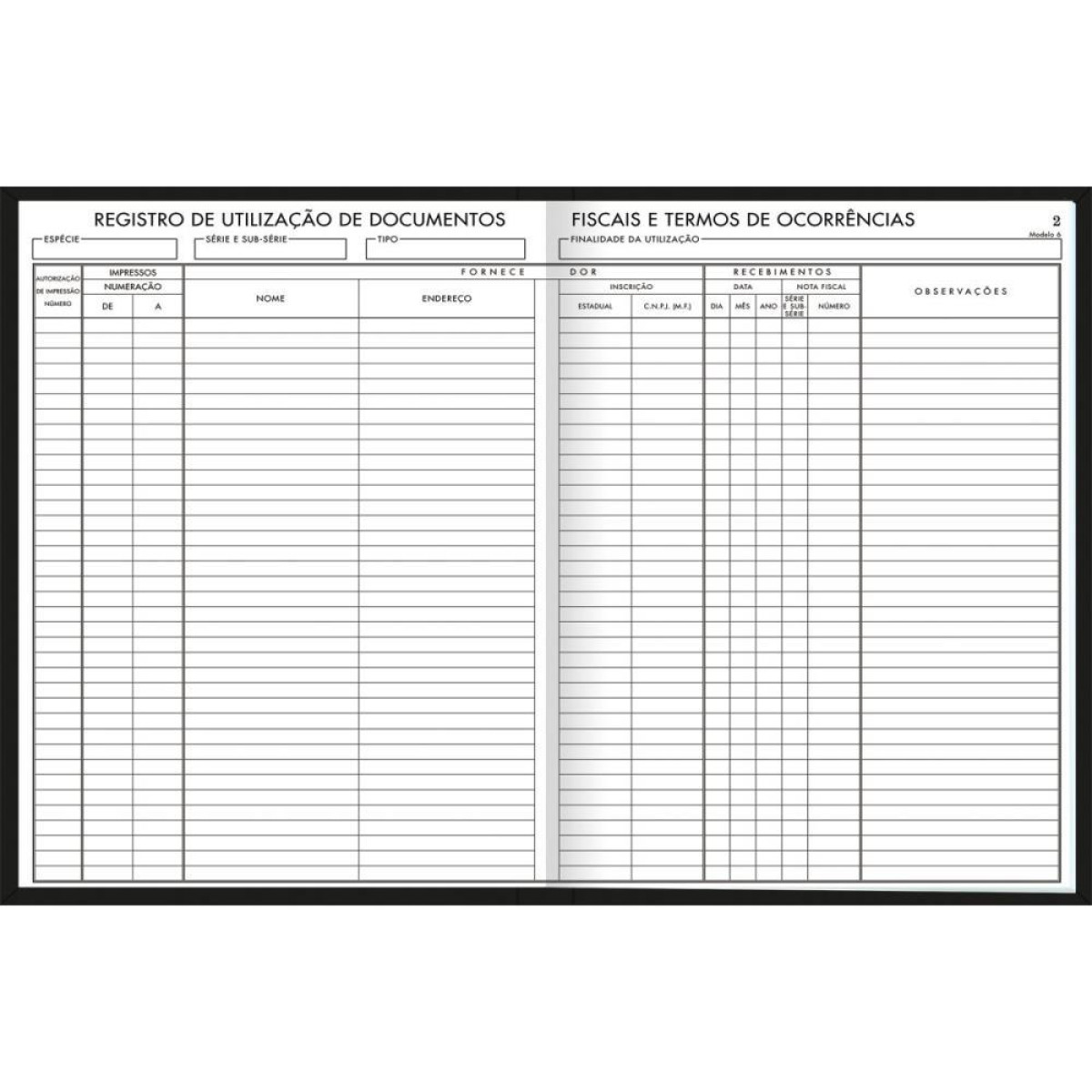 Livro Registro Documento Fiscal 50f.218x319mm Detalhes Capa: dura Folhas: numeradas Produto certificado: FSC® Formato: 218mm x 319mm Gramatura: 56 gm Numero de folhas: 50 folhas