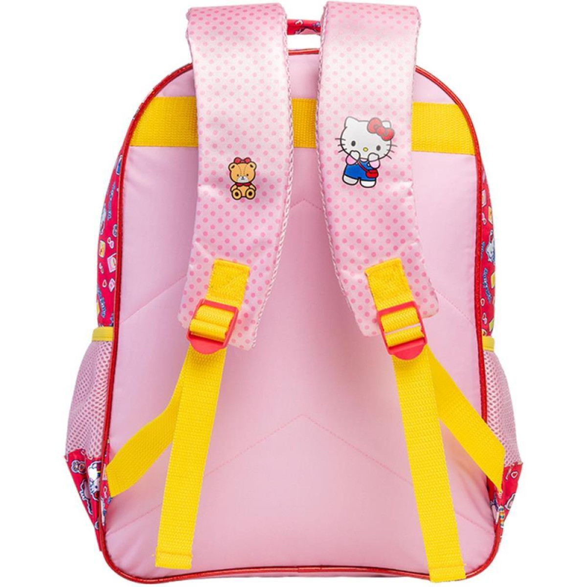 Mochila infantil G Hello Kitty..Altura de 40cm tamanho da mochila.Confeccionada em cetim de poliester; detalhe em pelucia e paetes laco ; dois bolsos laterais em mesh para garrafas; ; ziper "trator" e puxadores persoanalizados em material emborrachado com icones da personagem; cobre ziper para proteger o ziper de chuvas. .Estampa pelucia e paete Produto Licenciado Original.
