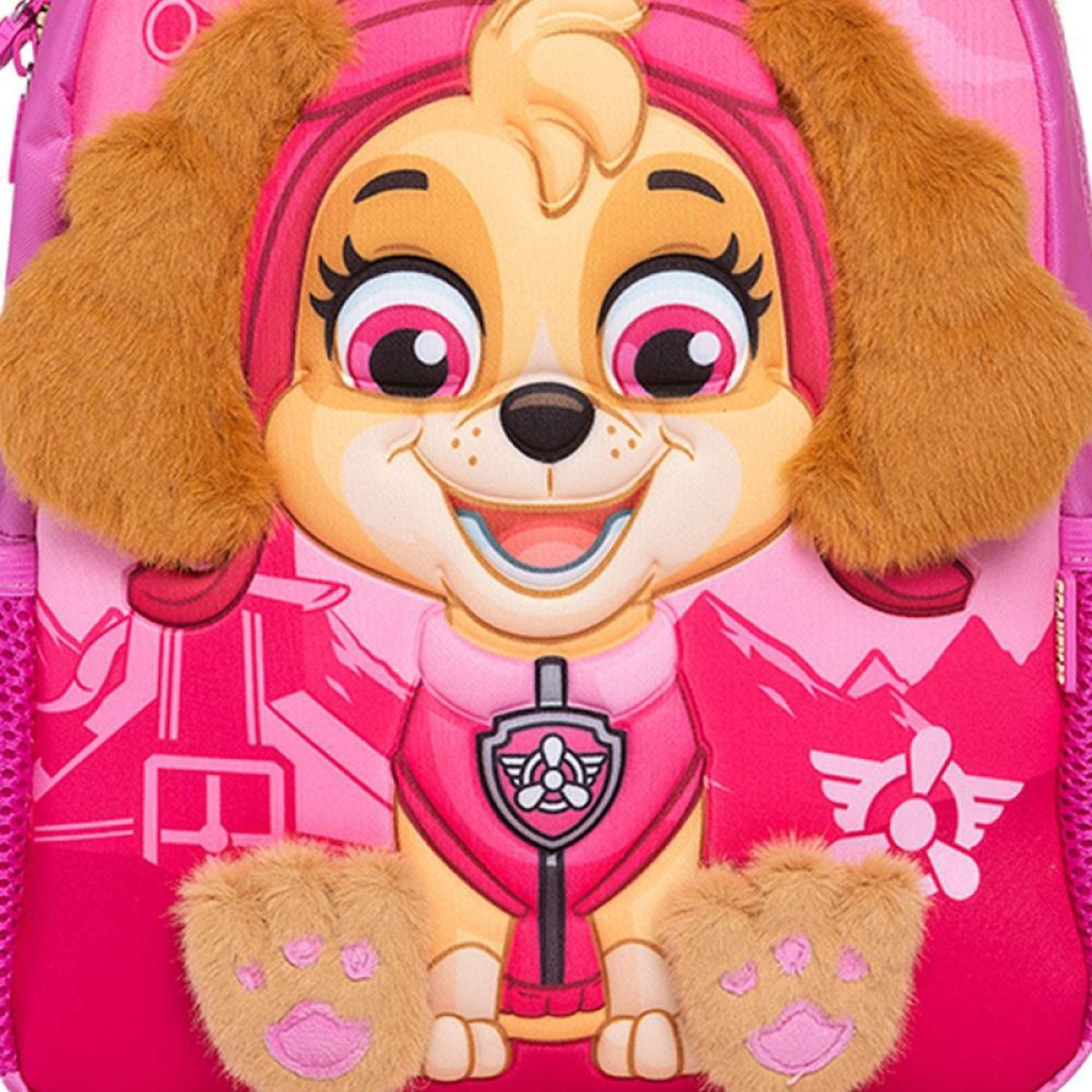 Mochila Passeio 30 cm duas reparticoes Skye. .Confeccionada em nylon e poliester de alta densidade. Personagem em 3D com espuma Fomm e detalhes em pelucia 3D as orelhas e as patinhas; dois bolsos laterais em mesh para garrafas; ; ziper "trator" e puxadores persoanalizados em material emborrachado com icones da personagem; etiqueta emborrachada da logomarca "Paw Patrol" em um dos bolsos laterais. . Produto Licenciado Original.