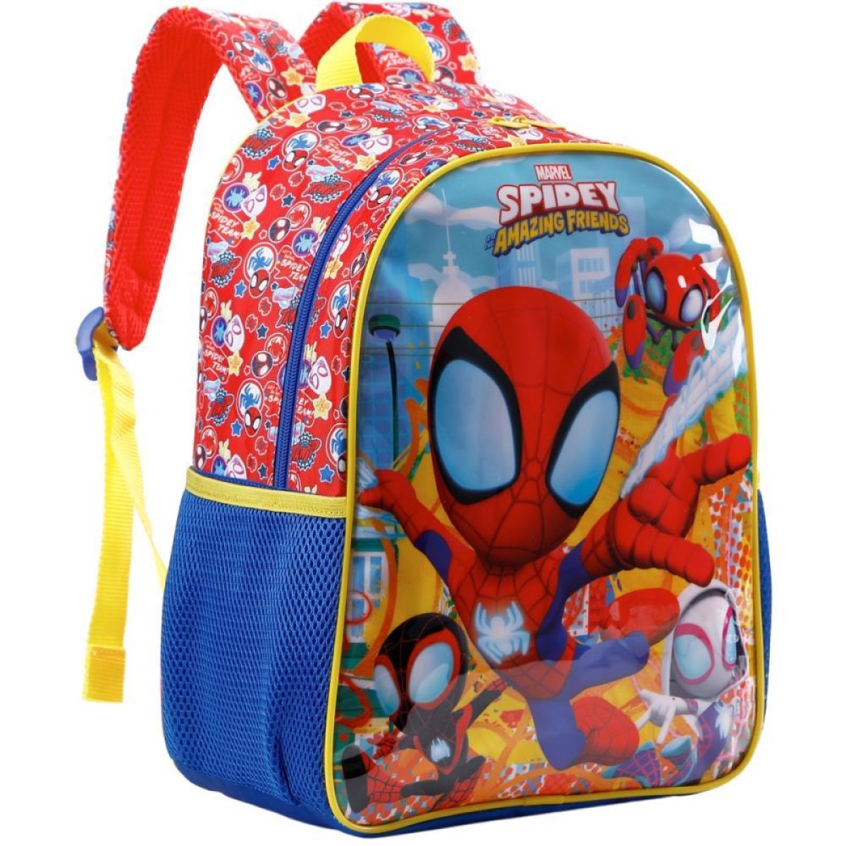 Em tamanho 14", produzida em poliester resistente e estampado. Painel frontal PVC Cristal - Compartimento principal amplo, 2 bolsos laterais mesh, ziper com puxadores simples e alca de mao em nylon . Alcas acolchoadas com regulagem de tamanho para maior conforto.