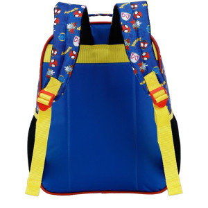 Em tamanho 16", e produzida em poliester resistente e estampado. Painel frontal EVA 3D Nylon relevo - Compartimento principal amplo, 2 bolsos laterais de mesh. Ziper com puxadores personalizados. Alca de mao de nylon com poliester e piping forrado. Alcas acolchoadas com regulagem de tamanho para maior conforto.