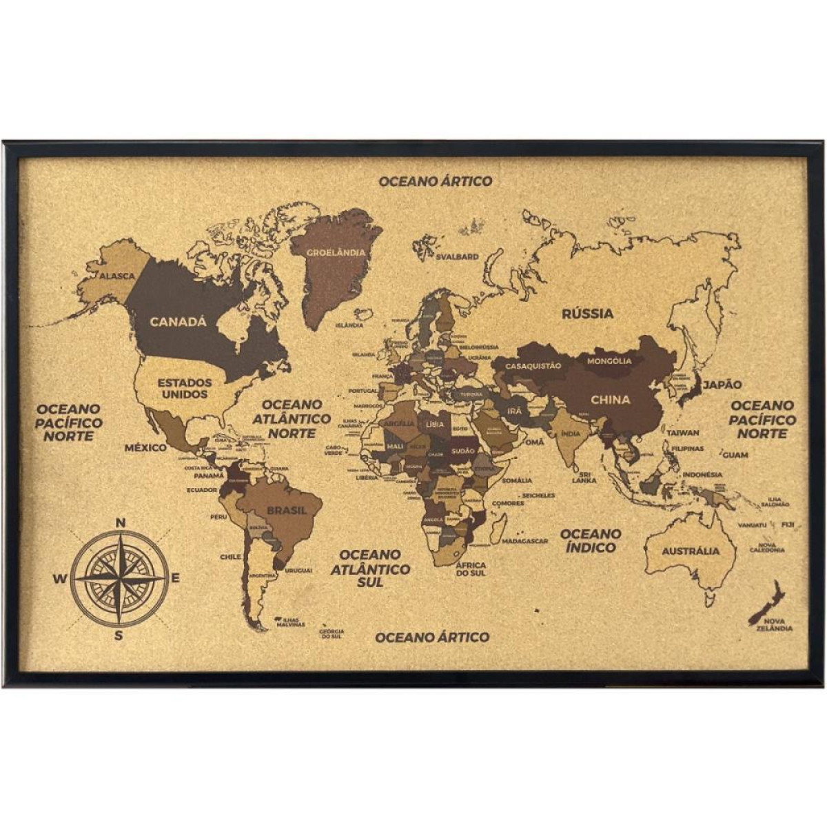 Quadro Decorativo Mapa Mundi Cortica 90x60cm
