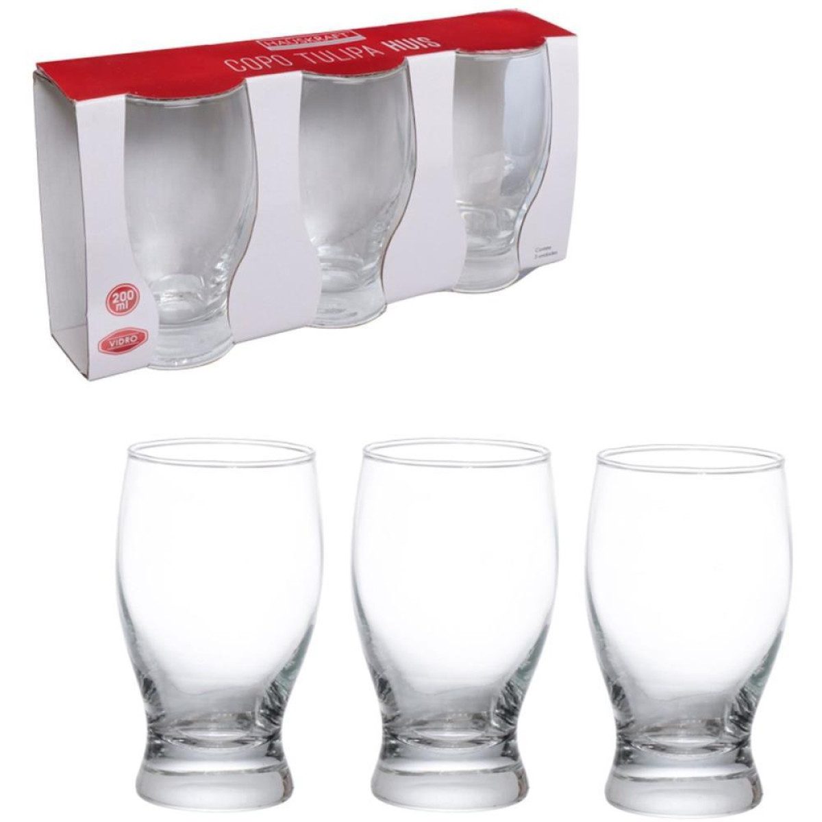 COPO TULIPA DE VIDRO HUIS 200 ML 3 PECAS