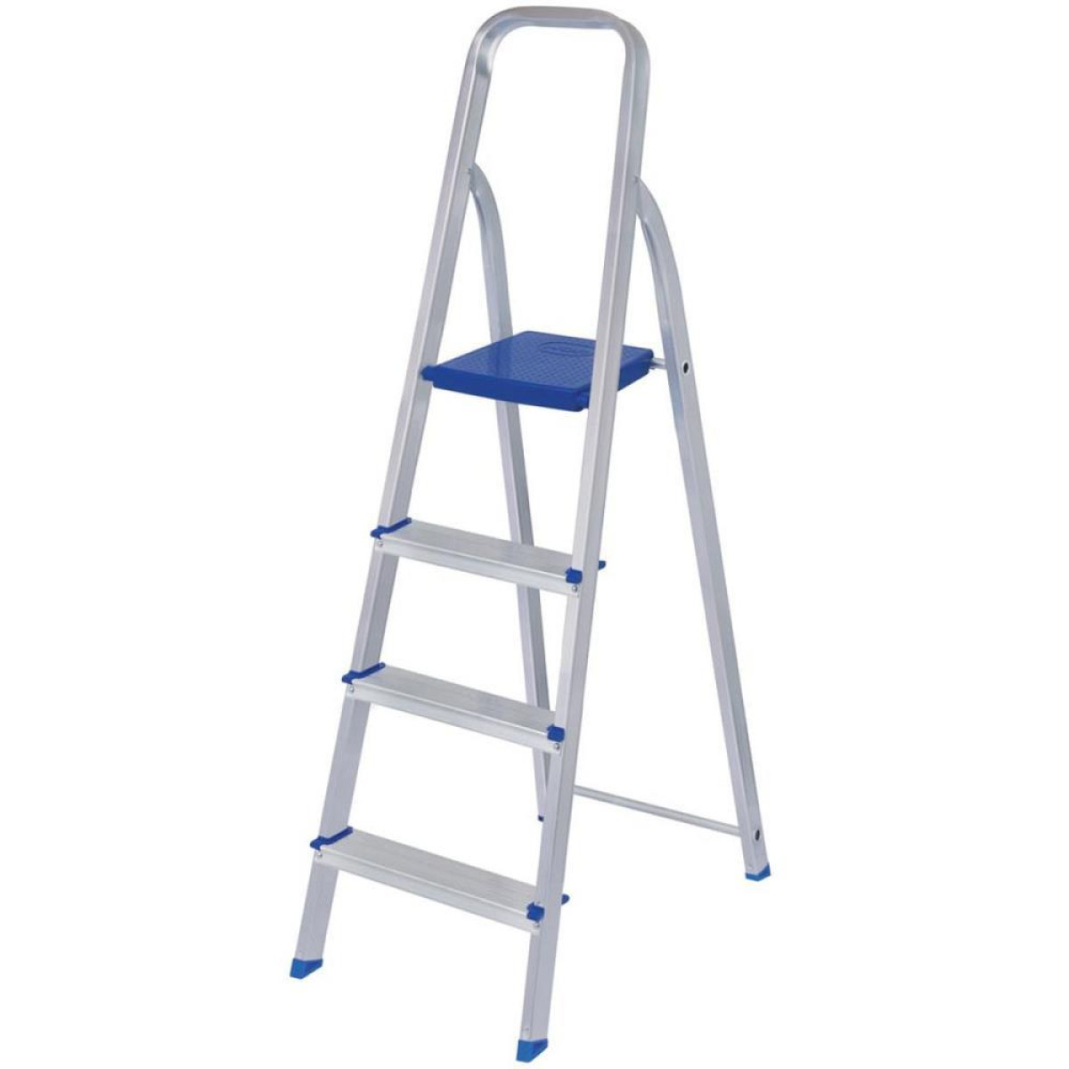 Para realizar aqueles consertos rapidos em casa com muita seguranca, nada melhor do que ter uma escada que propicie conforto e que mantenha voce firme no momento da utilizacao. Por isso a Mor elaborou para voce uma linha de escadas completamente confiavel, desenvolvidas com as melhores e mais seguras pecas. Dobravel e facil de guardar, a Escada de Aluminio 4 Degraus e ideal para pequenos consertos e para alcancar lugares mais elevados no uso domestico.