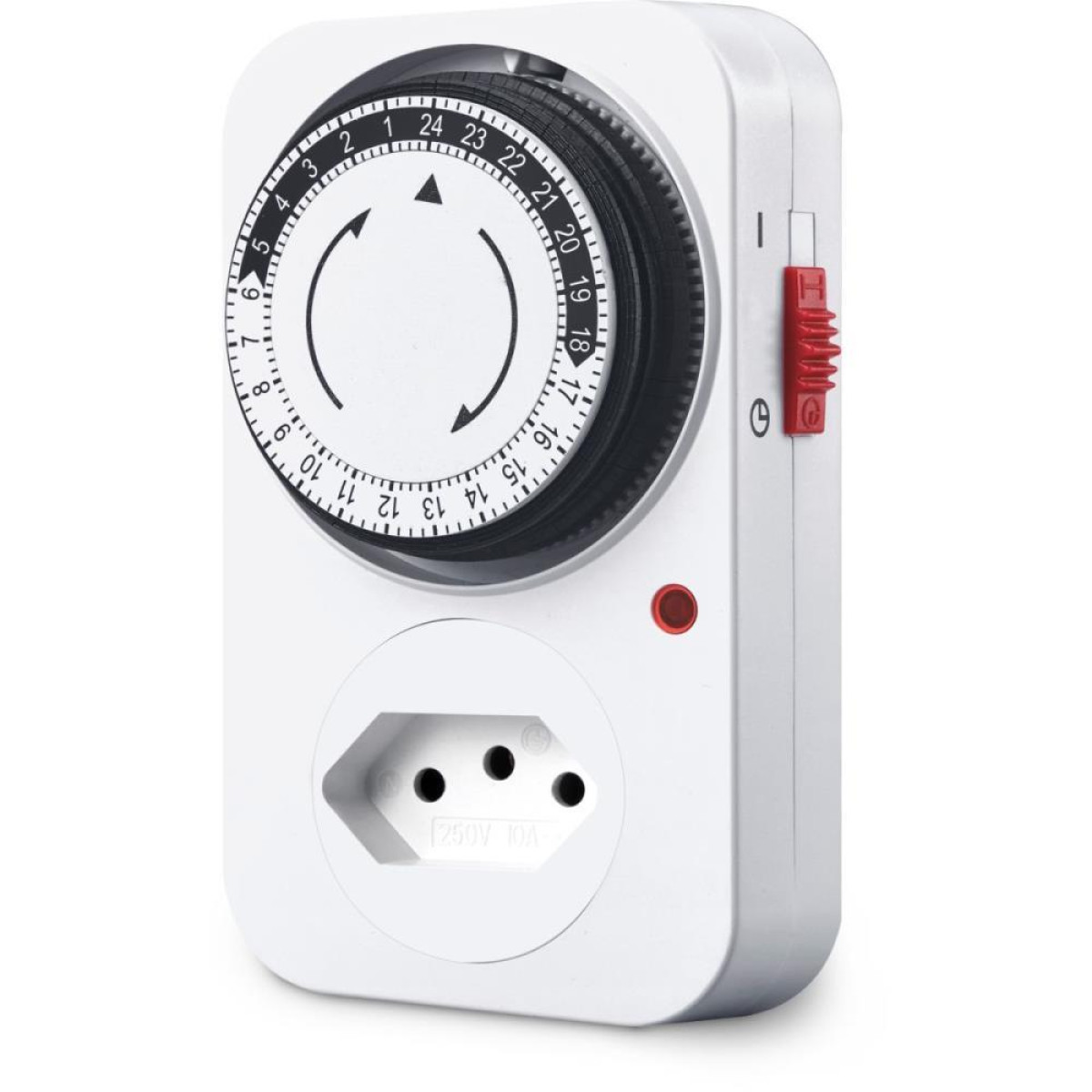 Timer analogico = e um relogio de tomada ou quadro de energia que voce gira o botao e programa os horarios. Nao e digital, e de ponteiro mesmo.