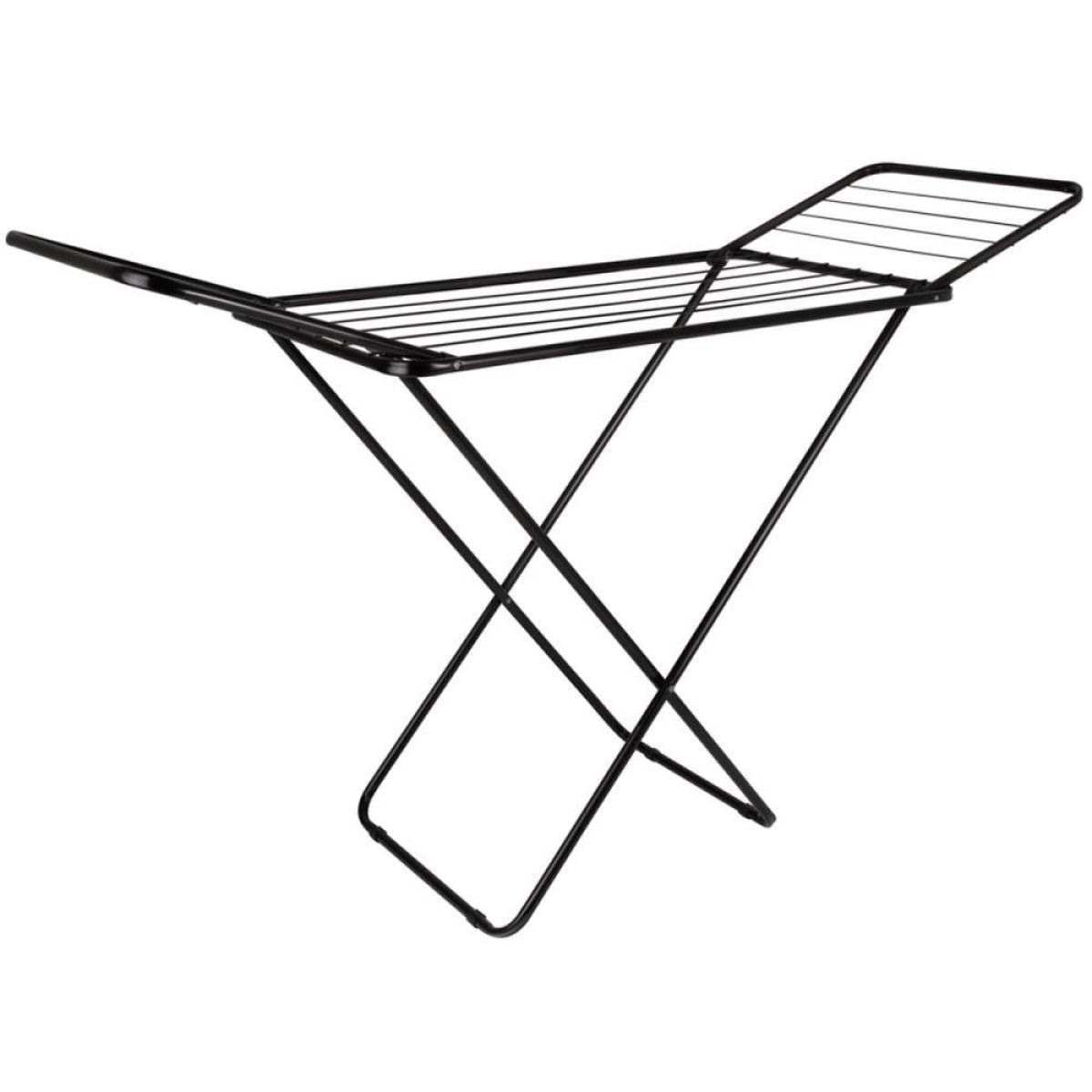 Para quem vive uma vida agitada e nao pode deixar as roupas secando a ceu aberto, ou para quem precisa de uma opcao por conta da quantidade de roupas, o Varal de Chao com Abas Slim Preto e ideal. Ocupa pouco espaco, e pratico para montar, desmontar e guardar. Sua estrutura foi desenvolvida em tubo de aco com acabamento em pintura epoxi a po preta, que proporciona um visual moderno. Suas pecas plasticas sao de polipropileno, incluindo as ponteiras em seus pes que ajudam a proteger o piso. Ideal para quem busca praticidade e qualidade em um mesmo produto, o varal otimiza seu espaco distribuindo seis varetas resistentes no centro e duas abas com quatro varetas cada com capacidade para ate 11m de roupas ou 20Kg distribuidos.