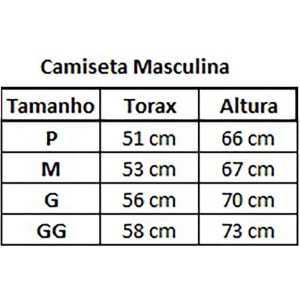 Tabela de medida - Camiseta Masculina