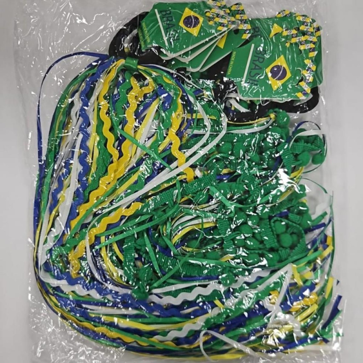 O adereco para cabelo com elastico e fitas em tecido e o acessorio perfeito para complementar o visual com um toque leve, colorido e cheio de movimento. Com fitas nas cores do Brasil, ele traz um efeito alegre e chamativo, ideal para eventos esportivos, festas tematicas, Carnaval e comemoracoes.