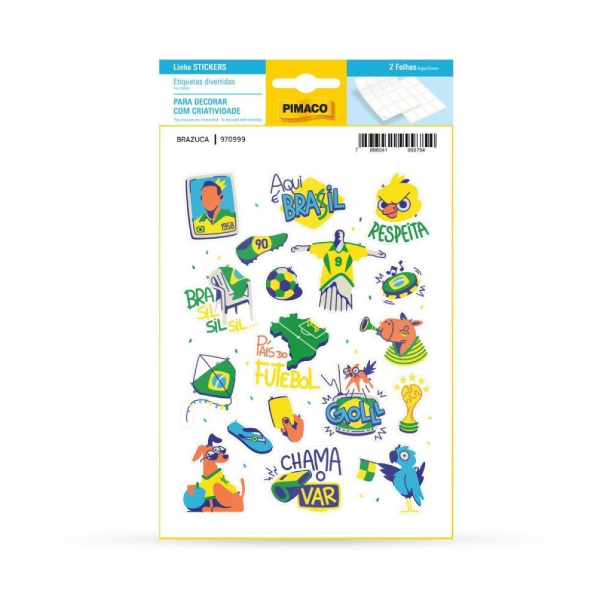 "ETIQUETA PIMACO BRAZUCA A5 – VAI BRASIL 2 FOLHAS - 18 figurinhas