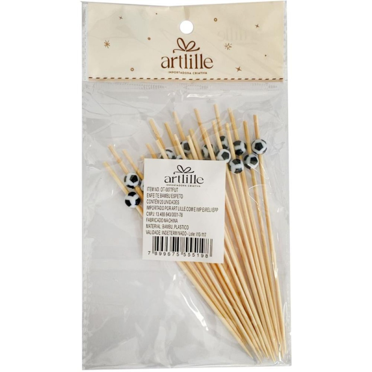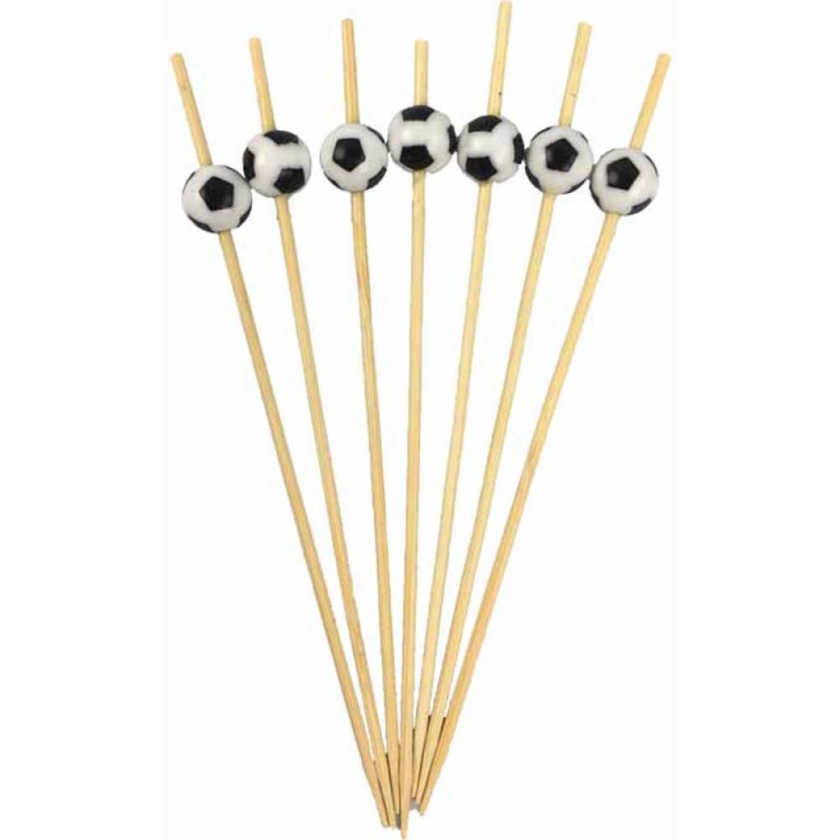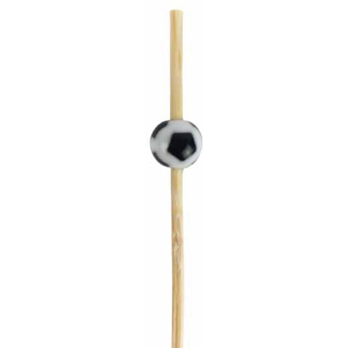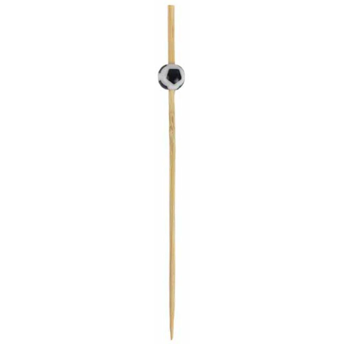 Palito de petisco decorativo com tema de bola de futebol, ideal para deixar seus petiscos mais divertidos em festas e eventos esportivos. O palito e feito em bambu, resistente e sustentavel, e a bola na parte superior em plastico adiciona um toque tematico a decoracao. Perfeitos para aniversarios, reunioes ou qualquer celebracao com tema futebolistico.