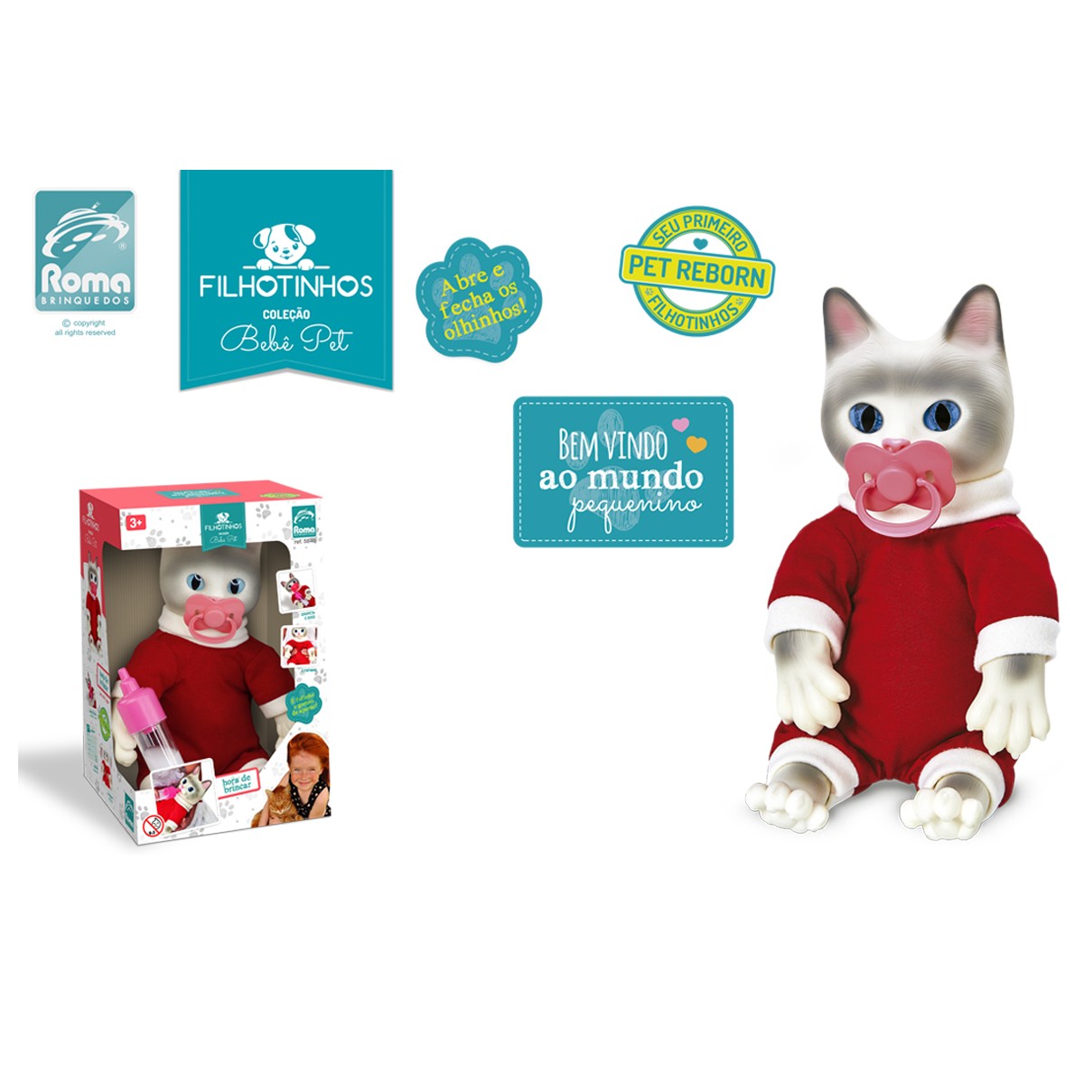 Boneco Pets Reborn Gatinho Com Corpo Macio E Mamadeira 30cm – Boneco de gatinho com corpo macio e mamadeira, perfeito para brincadeiras de cuidado e carinho. Estimula a imaginação e o desenvolvimento socioemocional.