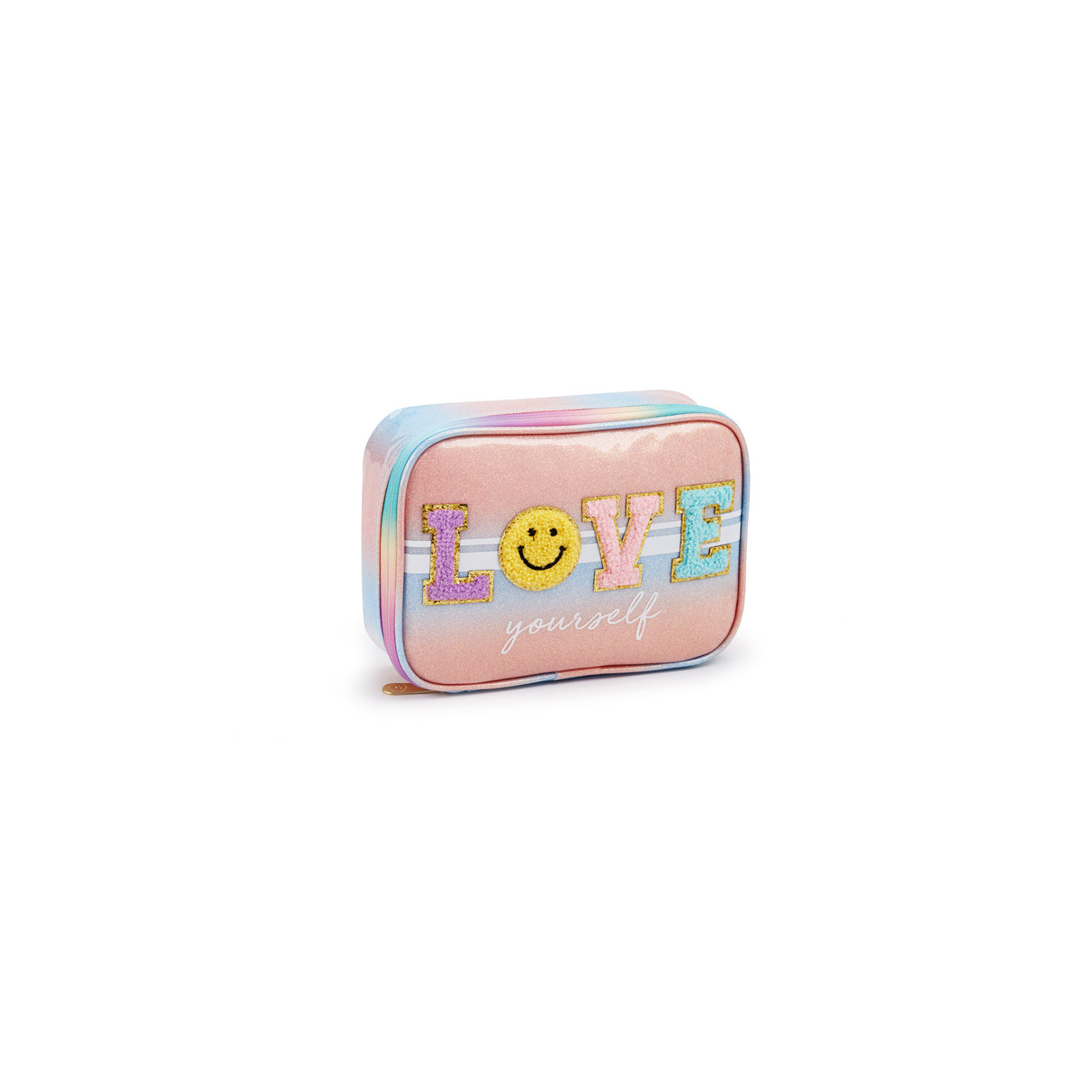 O estojo box feminino Seanite 42046 apresenta formato rígido, interior espaçoso e estampa moderna — ideal para organizar itens escolares.