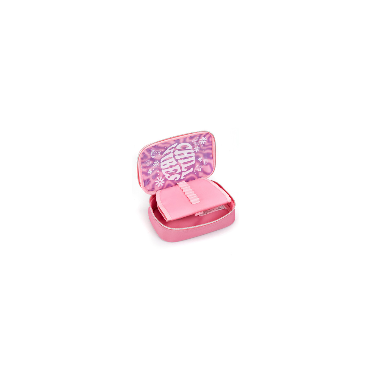 O estojo box feminino Seanite 42057 possui formato rígido, pinta delicada e espaço interno adequado — ideal para uso escolar.