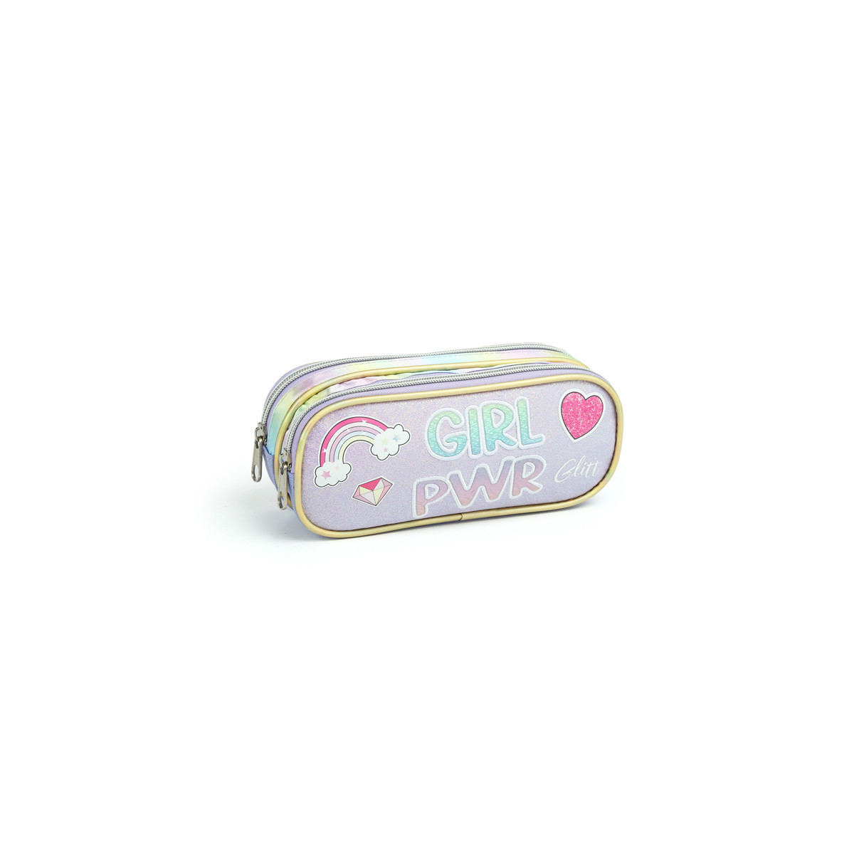 O estojo duplo infantil feminino Seanite 42194 conta com dois compartimentos com zíper — excelente para a organização diária dos estudos.
