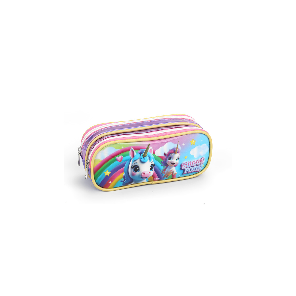 Estojo infantil feminino Seanite 43267 é leve, compacto e resistente, com zíper durável, estrutura funcional e estampa charmosa — perfeito para organizar lápis e acessórios escolares.