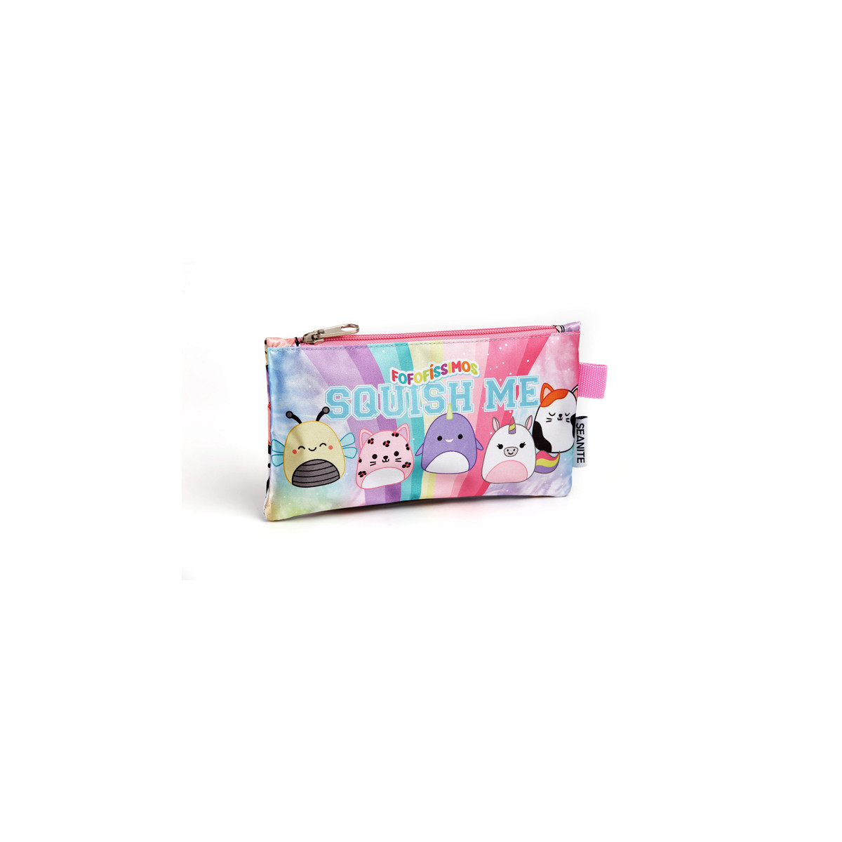 Estojo infantil feminino Seanite 42097 é compacto, com zíper resistente e estampa suave — ideal para uso escolar.