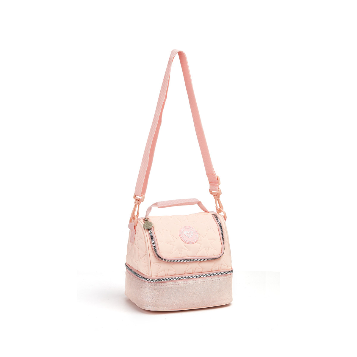 A lancheira térmica feminina Seanite 42213 possui isolamento térmico, bolso frontal e alça de mão — ideal para manter refeições frescas.