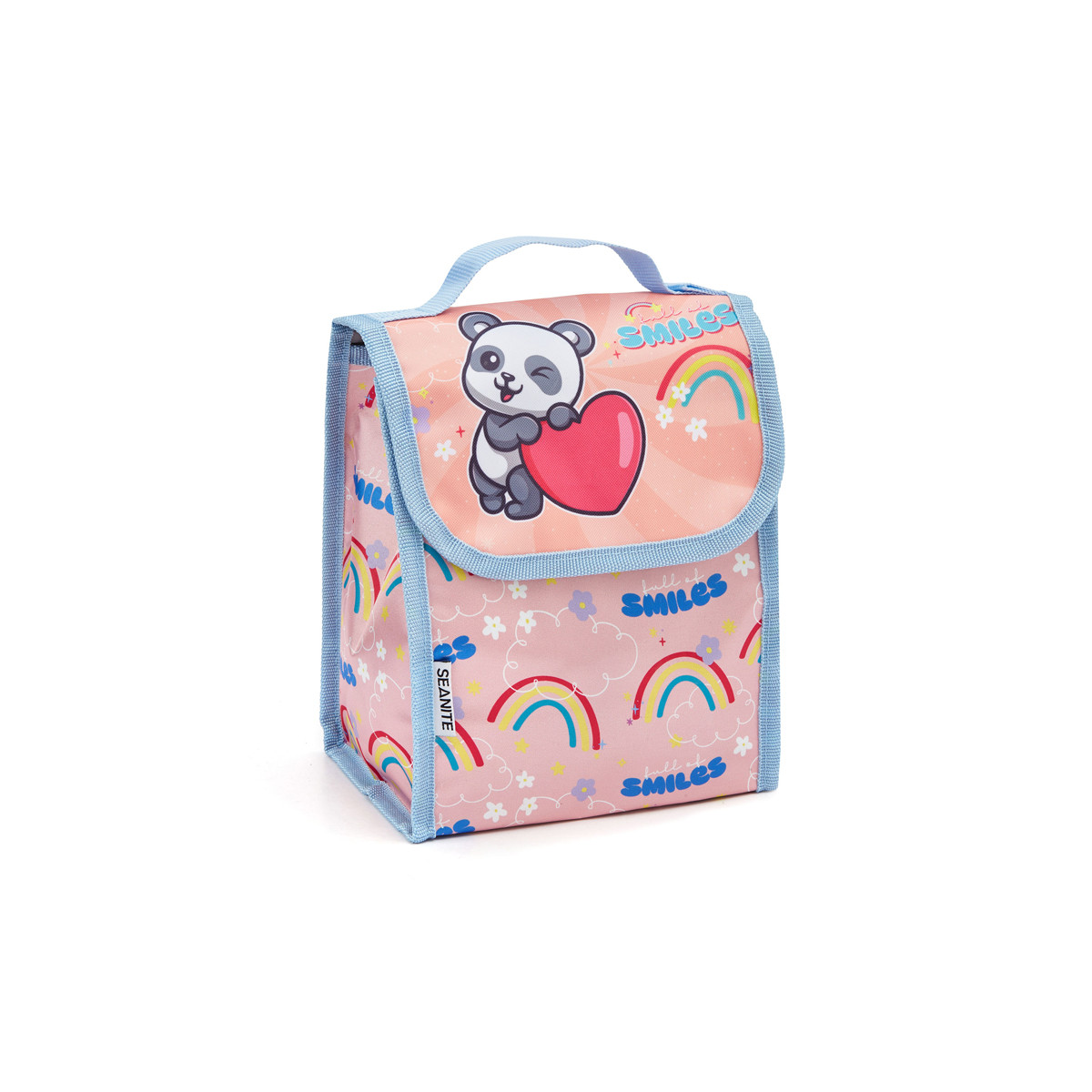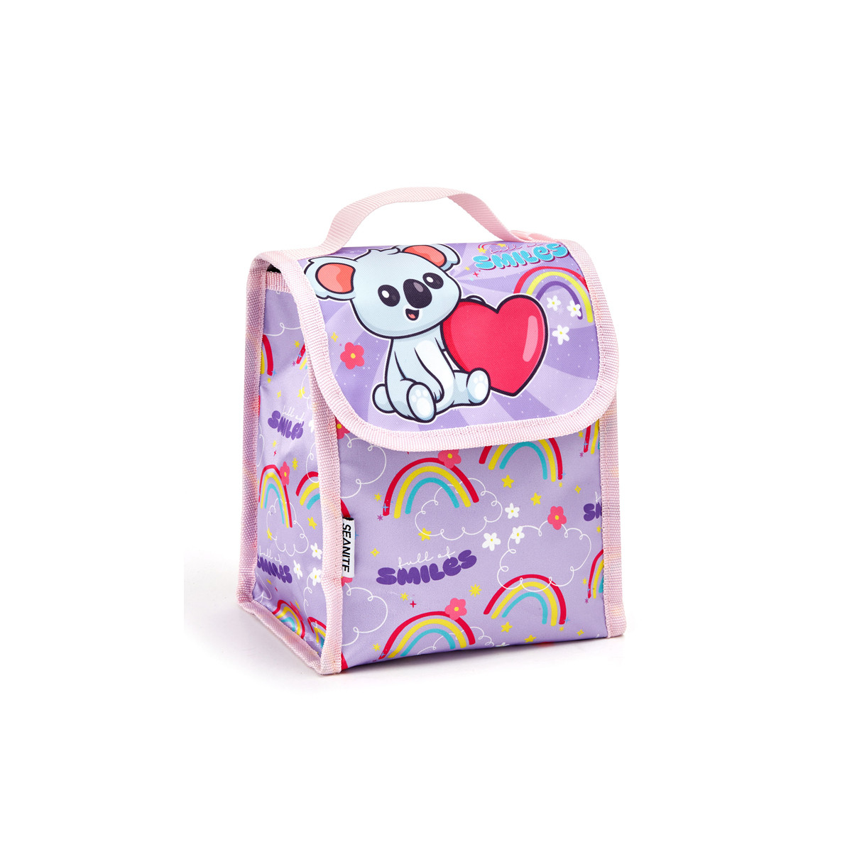 Lancheira térmica infantil feminina Seanite 42102 possui revestimento térmico, bolso frontal e alça prática — ideal para transportar alimentos.