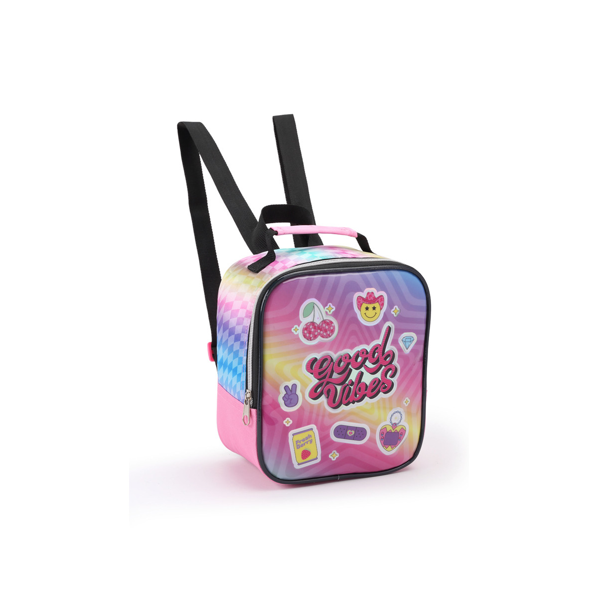 Lancheira térmica infantil feminina Seanite 43242 mantém lanches frescos com seu isolamento térmico, bolso frontal e alça — ideal para o uso escolar.