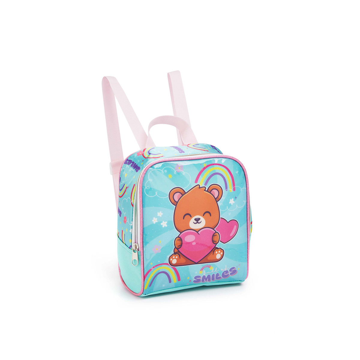 Lancheira térmica infantil feminina Seanite 42081 possui revestimento térmico, bolso frontal e alça ajustável — ideal para transportar lanches com segurança.