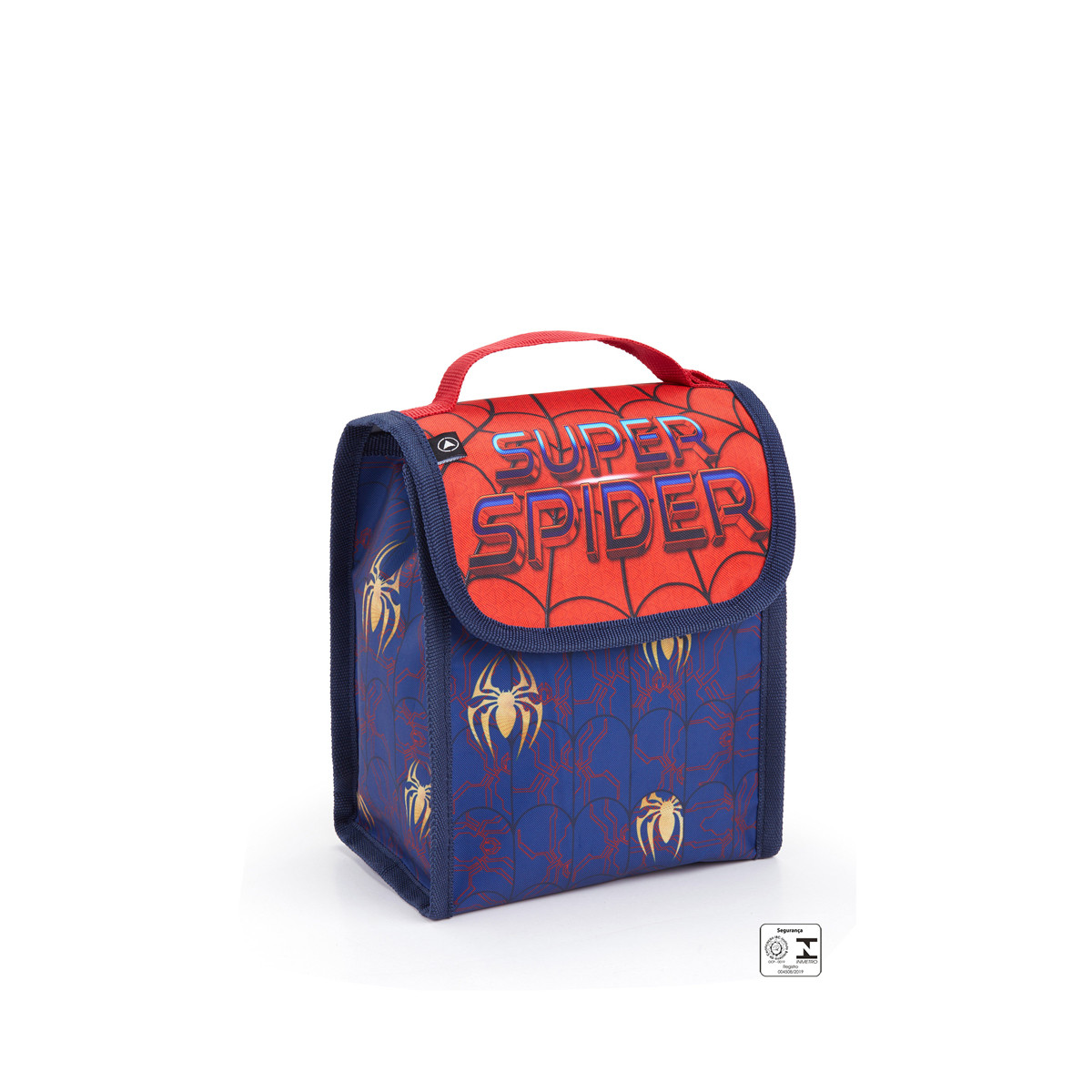 A lancheira térmica infantil masculina Seanite 41380 possui revestimento interno em alumínio, alça de mão e bolso frontal, adequada para conservar refeições em passeios.